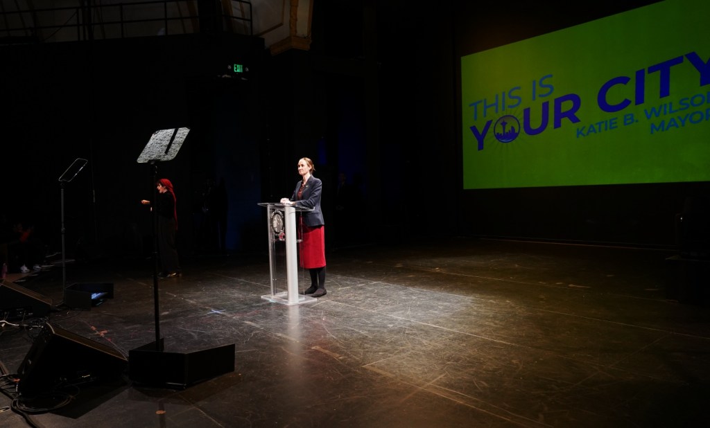 【西雅图中文电台报道,记者:Chentao】西雅图市长凯蒂·B·威尔逊(Katie B. Wilson)今日在兰斯顿·休斯表演艺术学院(Langston Hughes Performing Arts Institute)发表了以“希望的准则”(Discipline of Hope)为核心的市情咨文。面对座无虚席的会场,威尔逊市长详述了应对无家可归和枪支暴力挑战的具体方法,阐述了她对西雅图未来的愿景,并公布了一项聚焦于可负担住房、食品、托儿服务以及为小微企业创造良好环境的“可负担性议程”。