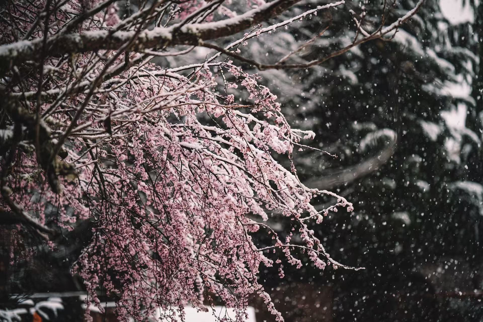 市民Becky北在Bellevue拍摄到的雪中花开