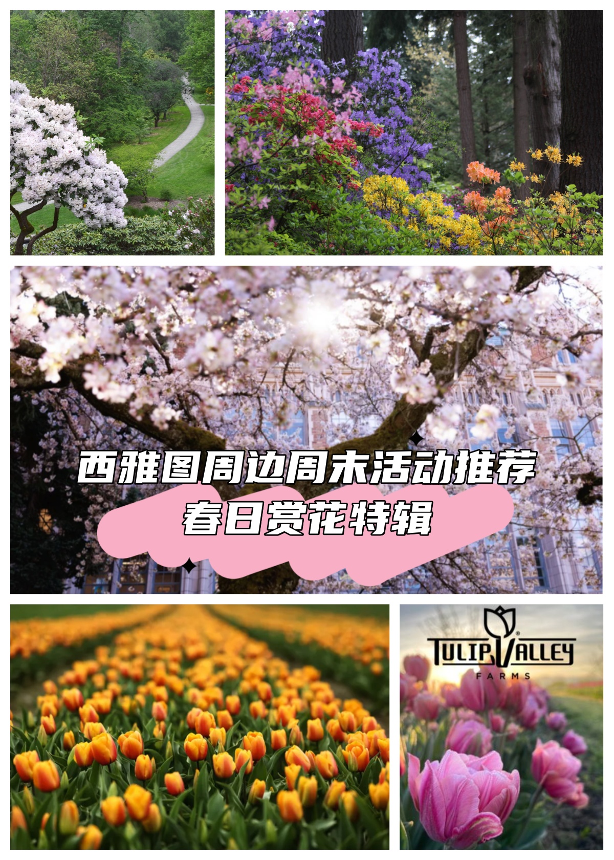 今年,西华盛顿州迎来了一次特别早的春花盛开季。华大的樱花与斯卡吉特山谷郁金香同步绽放,难得一遇。这个周末,华大的樱花已经进入最佳观赏时期,而斯卡吉特山谷的郁金香正含苞待放,水仙则已随处可见。这个周末,打开家门,去见证春天吧。