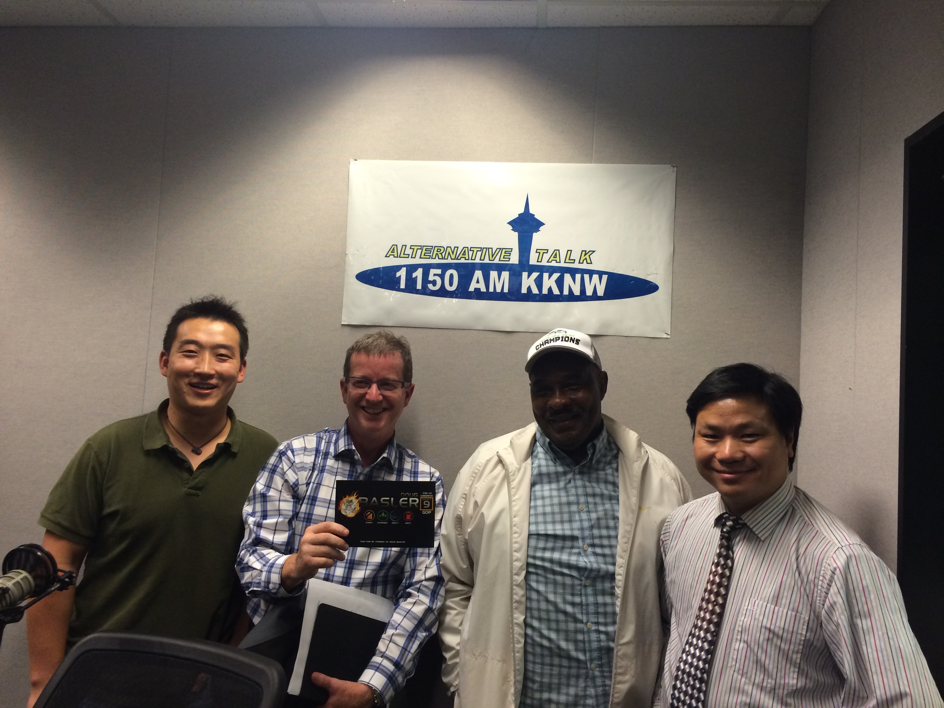 美国联邦众议员候选人Doug Basler于9月17日来到西雅图中文电台,接受了美国故事栏目的独家专访。节目开始前,Doug就兴致勃勃得跟电台主播们聊了起来,为人十分随和。Doug Basler是华盛顿州第九选区的联邦众议员候选人,他将在11月4日的大选中,挑战已经担任国会议员近18年的民主党人Adam Smith。在西雅图中文电台的专访中,Doug Basler和他的竞选经理Wayne博士畅谈了他对他的竞选对手Adam Smith的最大优势,他还对提高最低时薪、美国的移民改革、奥巴马医保法案、以及美国的教育等方面发表了看法。值得一提的是,Doug没有取得过大学学位,他曾经担任过电台和电视台主持人,现在拥有一家媒体公司,他是5个孩子的爸爸,他参选的原因是他认为他比职业政治家更知道人民的疾苦,他认为现在美国的一些政策需要改革才能真正让老百姓受益。Doug的人生轨迹,代表了美国的精神。Doug对自己击败Adam Smith进入美国国会充满信心,他认为美国国会更需要像他这样从普通民众中来的人去代表民众,为他们发声。