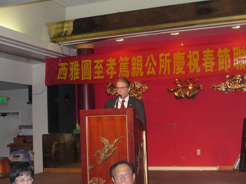 (2月6日,欧文副州长在西雅图华埠参加活动)
