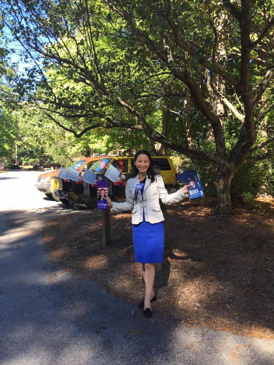 小元:那我简单介绍一下江秀,符江秀是北卡第四选区国会众议员的候选人,她来自海南,26岁来到美国,当过程序员、当过房地产的经纪人,现在她正在参选国会的议员,如果她当选了,她将会是国会里首位第一代的华人,那也是首位来自中国大陆的华人,大选不到两周的时间了,那么江秀你准备的怎么样了?