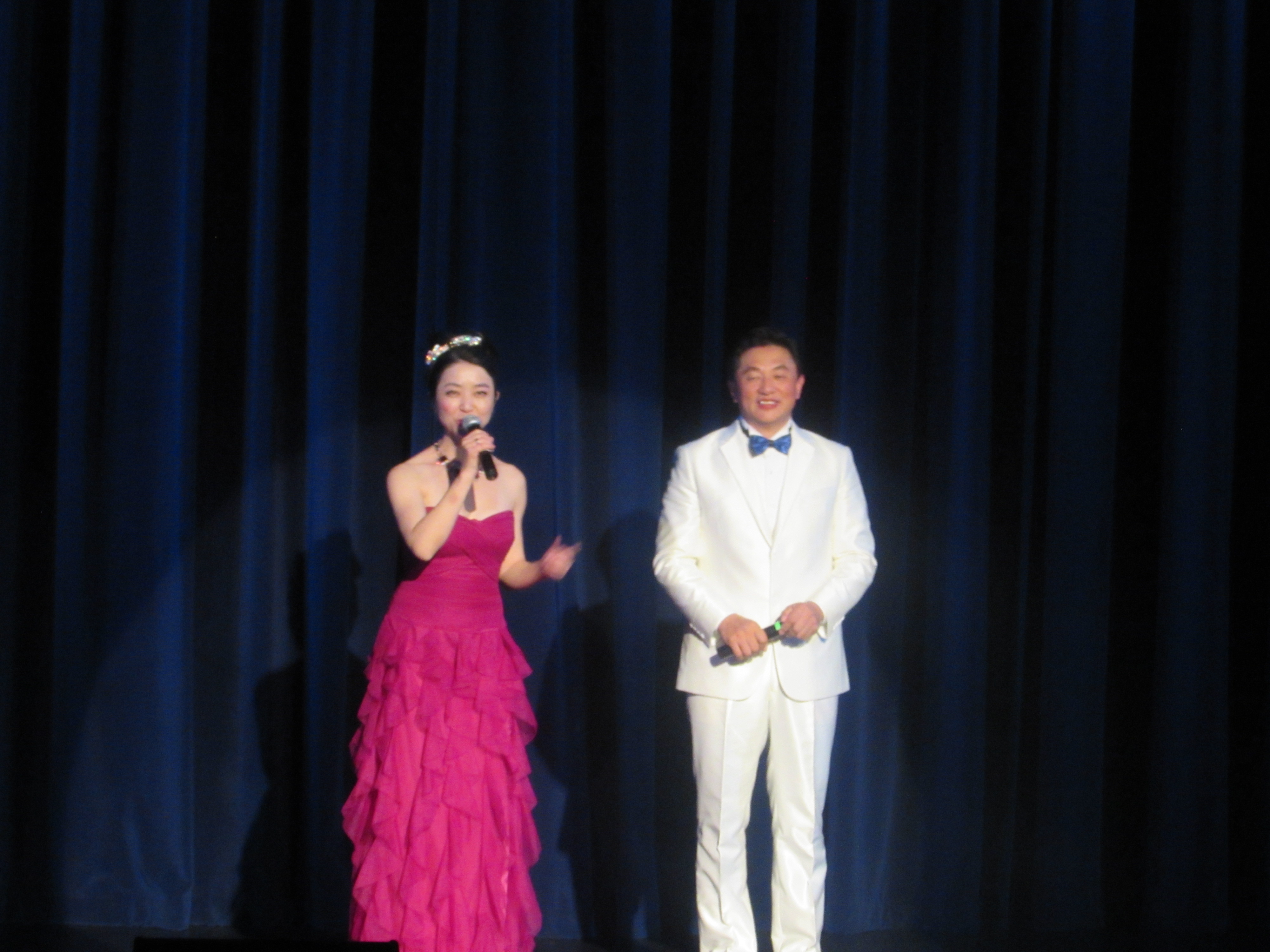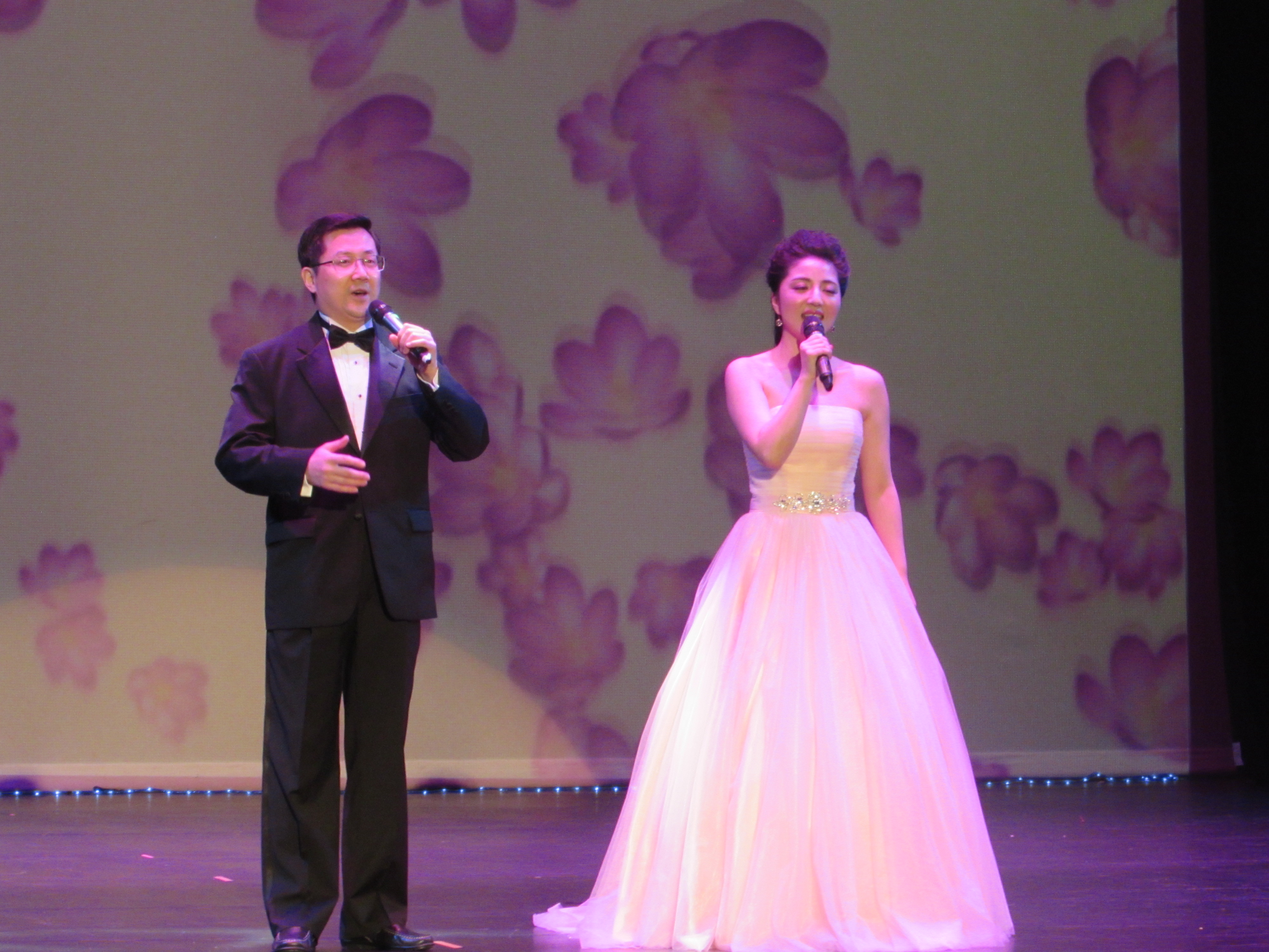 《国色“添”香》由西雅图中文电台主持人谢欢,以及来自温哥华的男高音歌手吴连杰主持。晚会的更多照片,请参见:西雅图歌舞图《国色添香》歌舞晚会