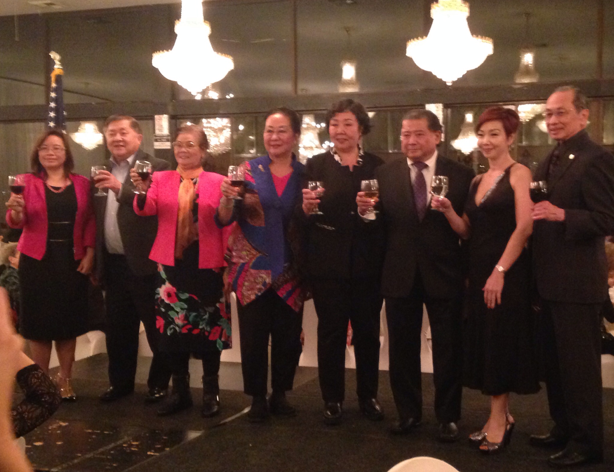 (全体筹备委员敬酒 – 右起:曹仁傑、司徒美宝、孙乐瑜、吴晓明、吴小燕、彭秋风、李文辉、萧鸣)