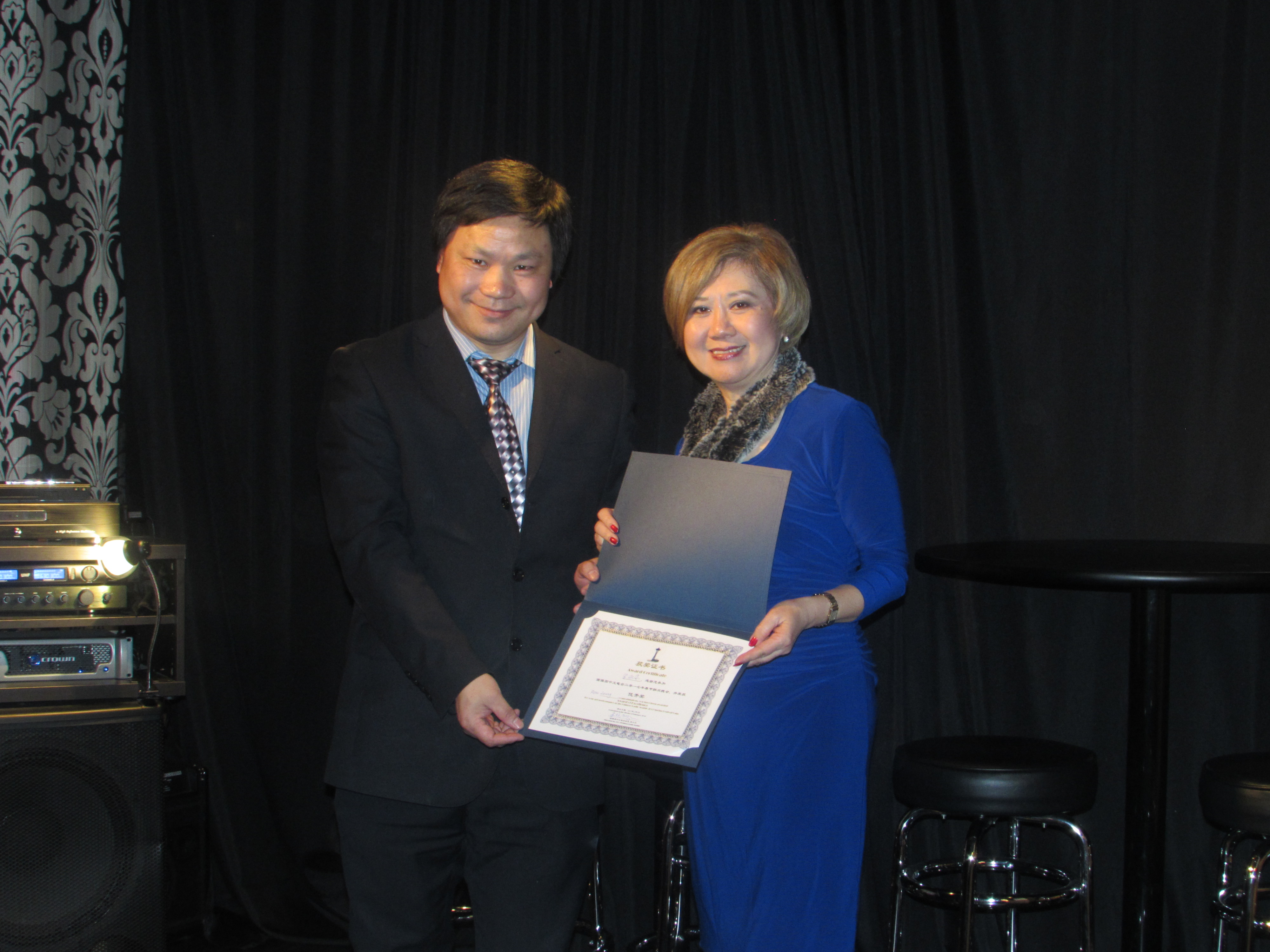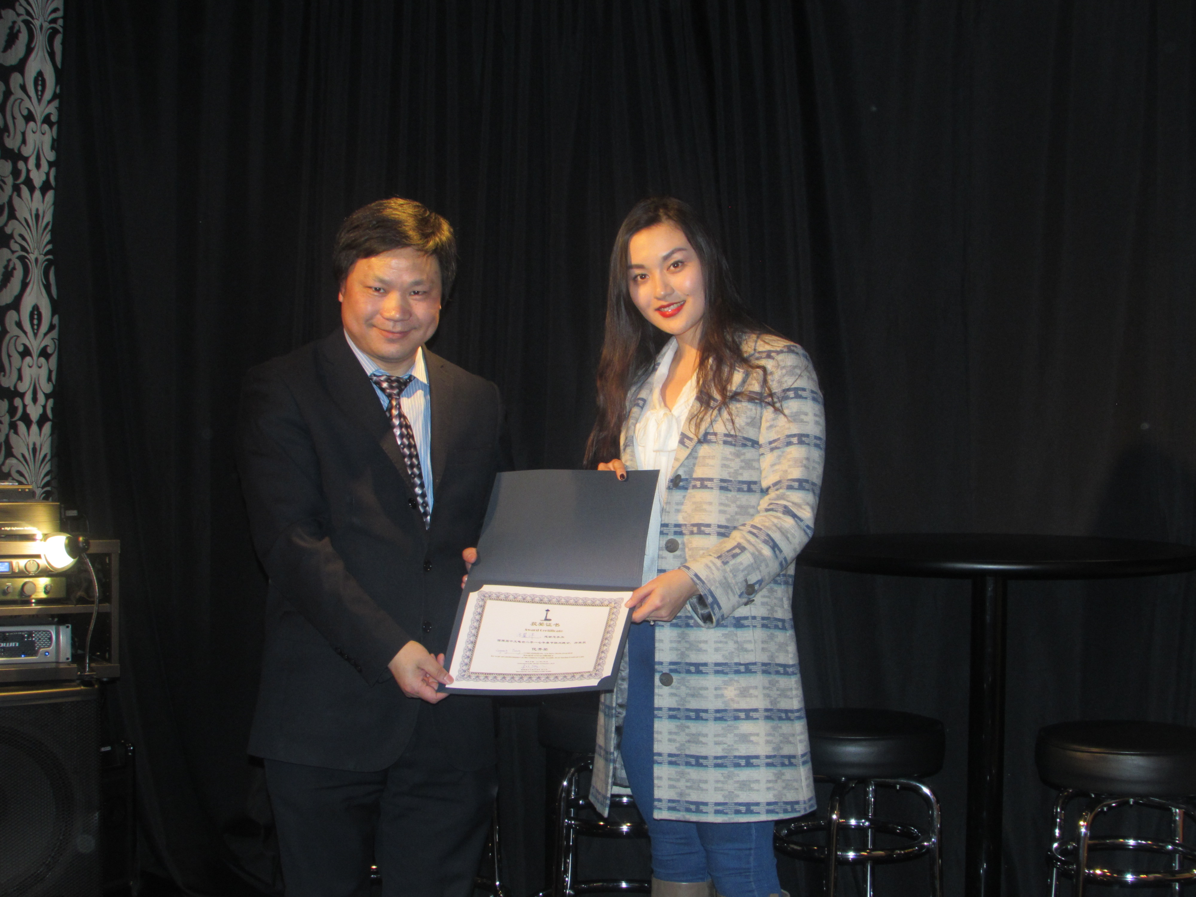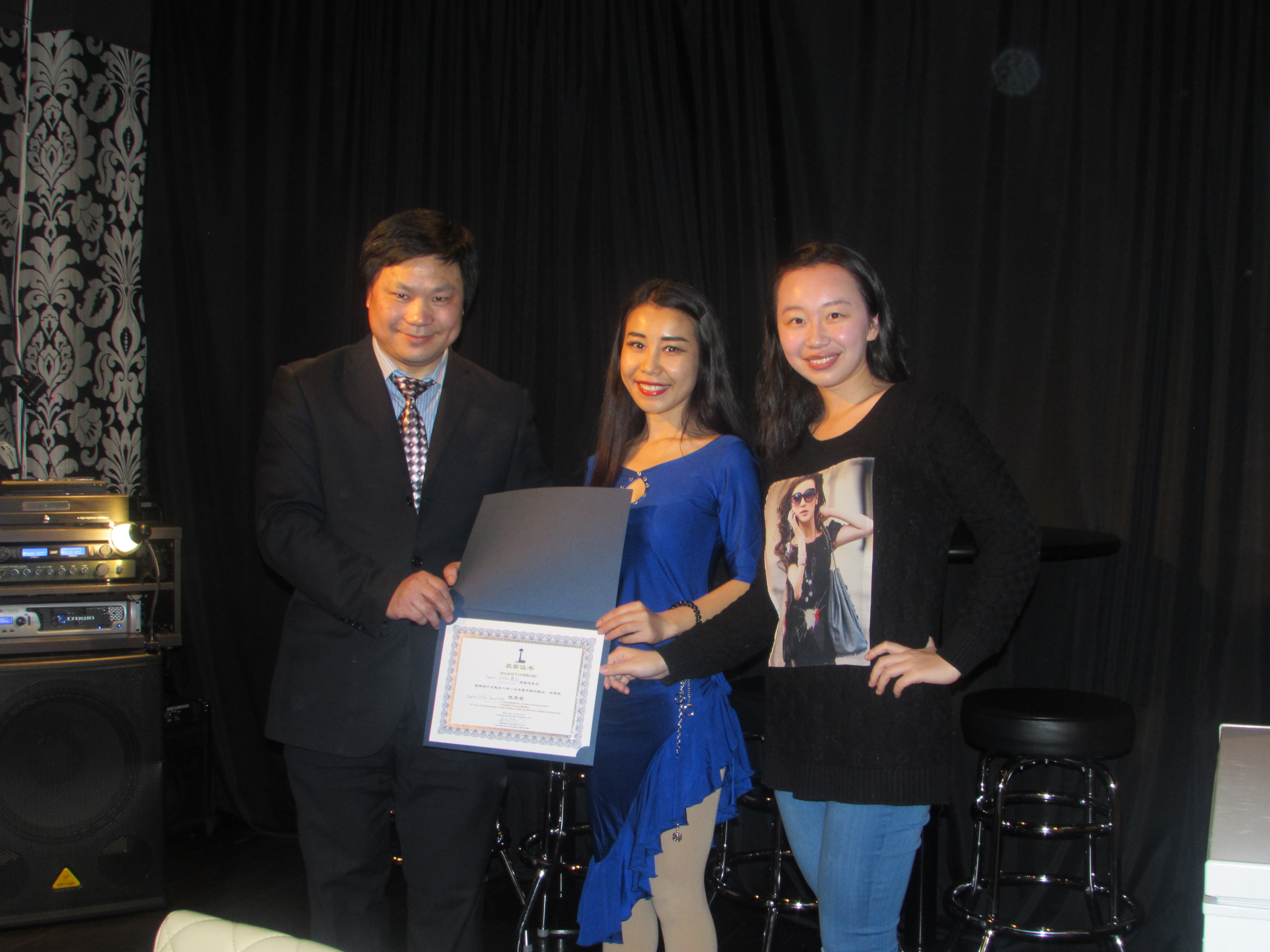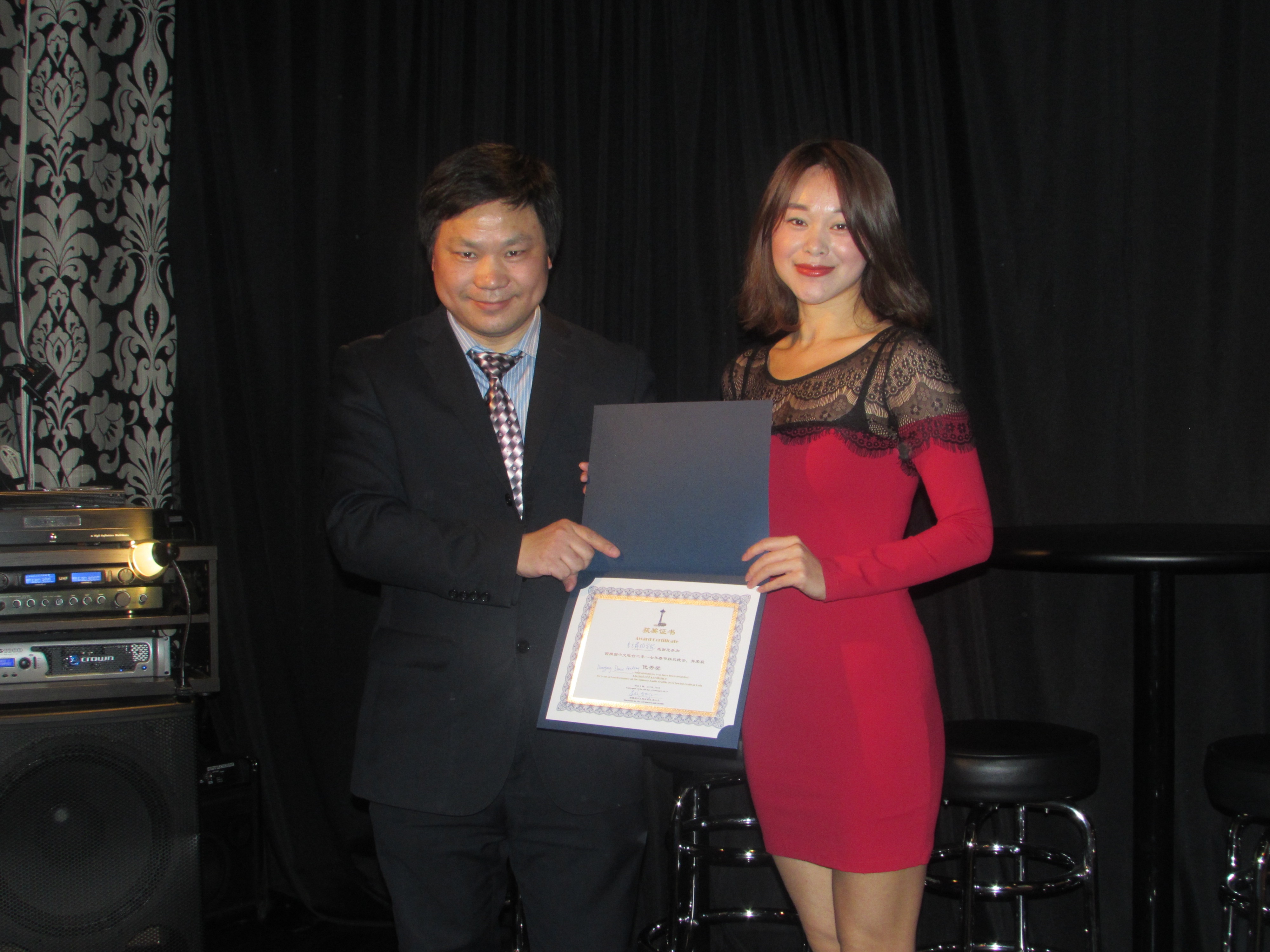 (西雅图歌舞团董事长杨晓先生代表西雅图歌舞团领取西雅图中文电台2017年春晚优秀奖)
