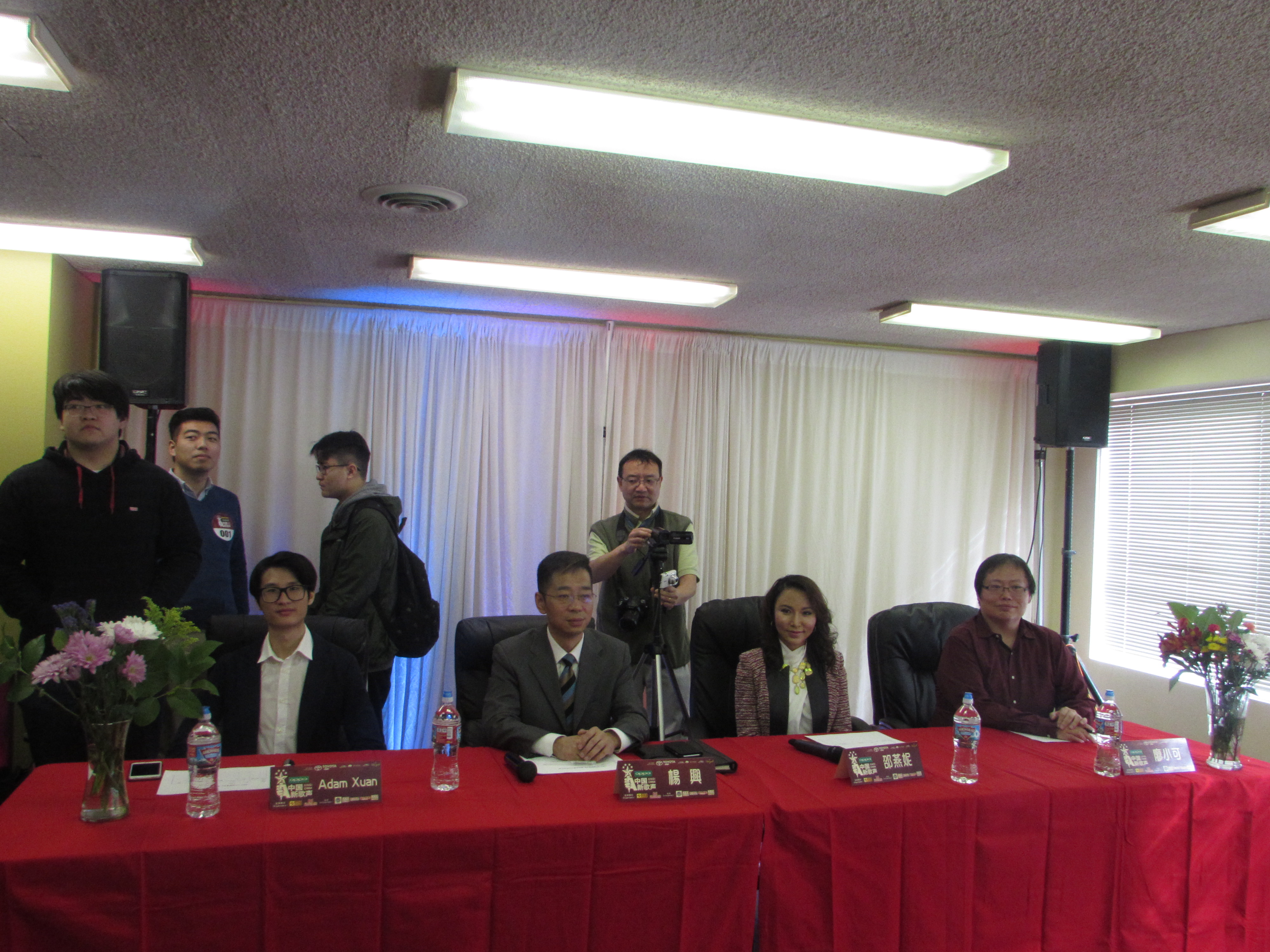 (赛前评委各就各位:左起:Adam Xuan、杨兴、邵燕妮、廖小可)