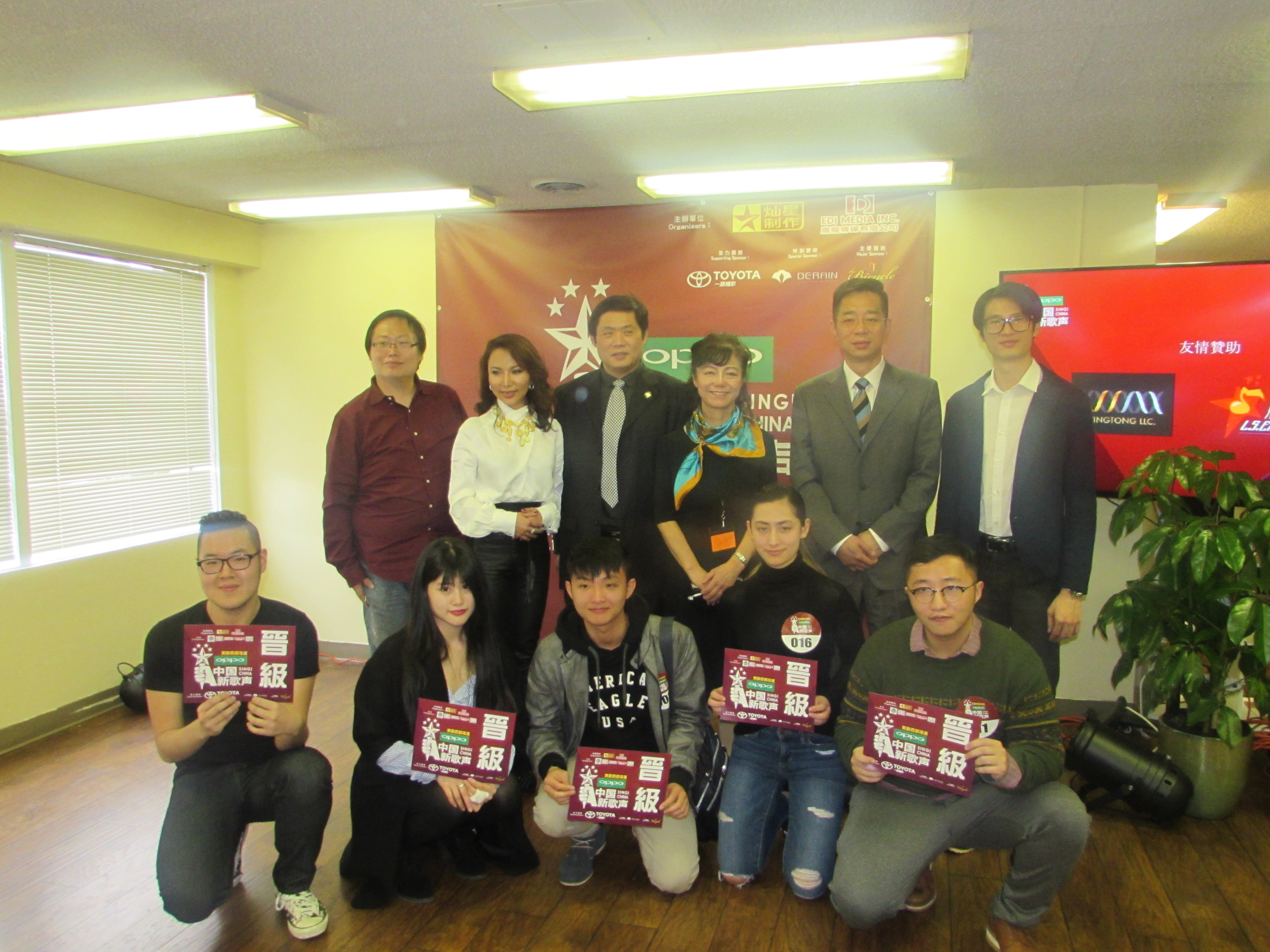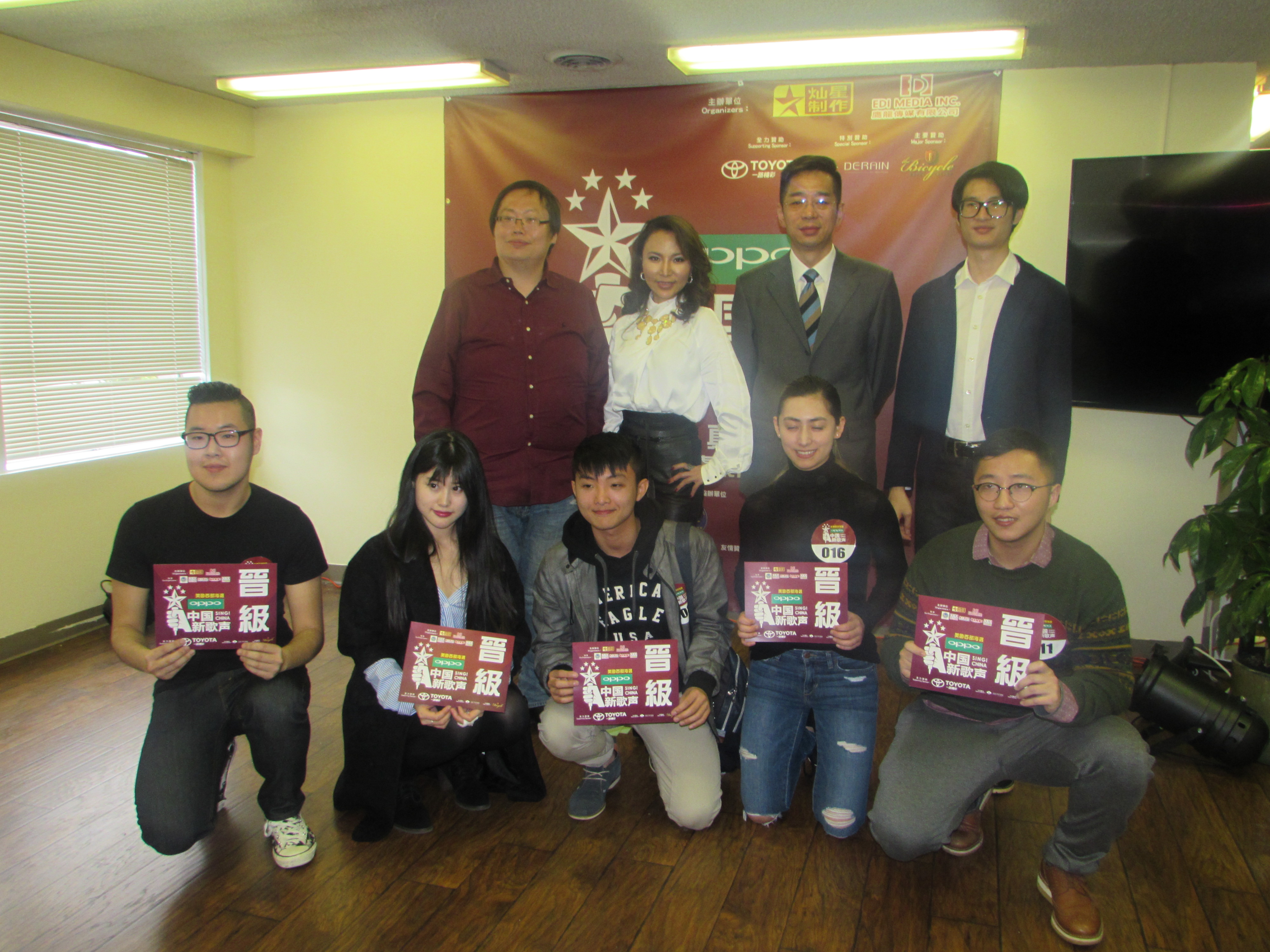 (中国新歌声西雅图赛区海选优胜选手与评委、主办方、承办方合影)