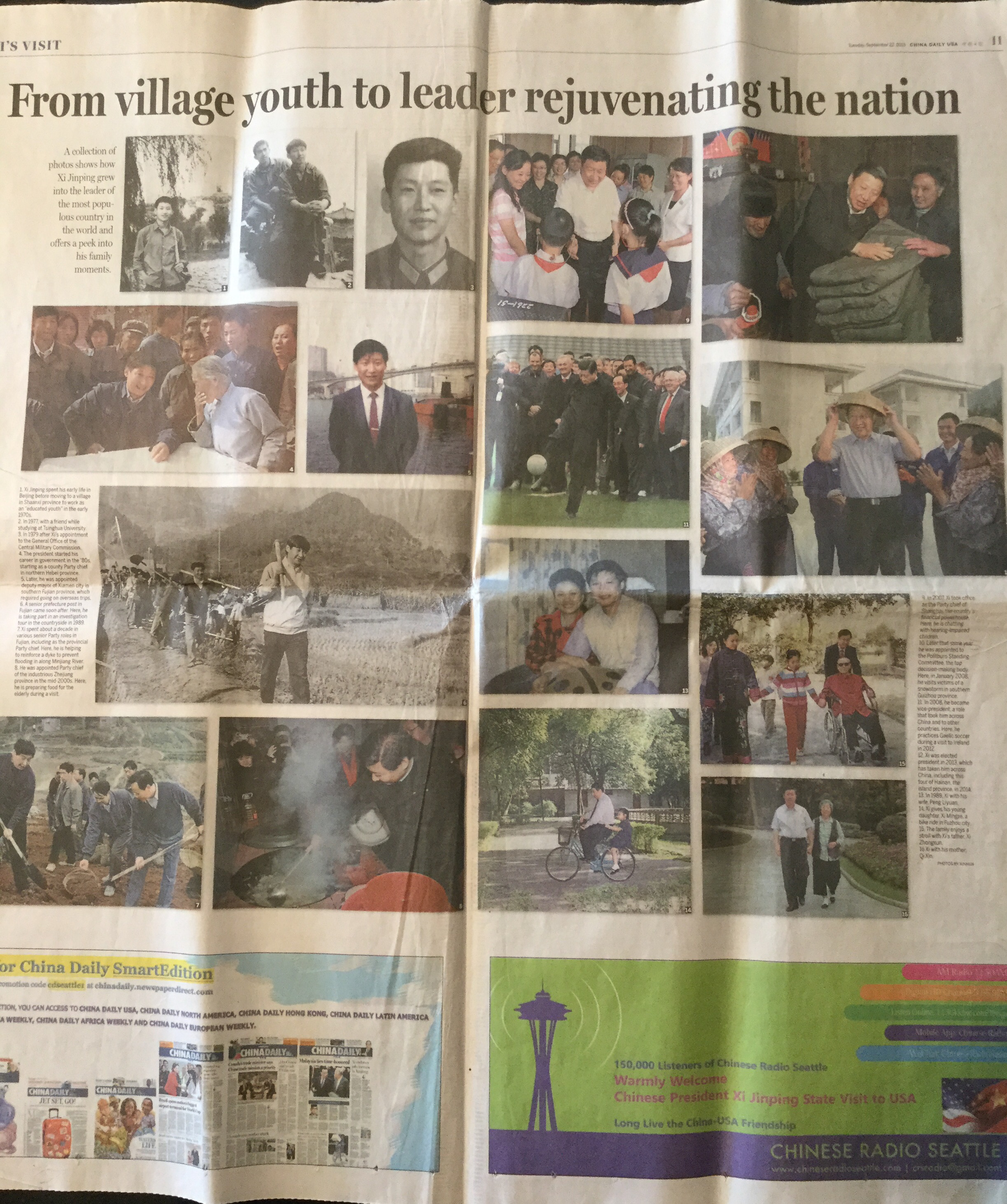 (西雅图中文电台在《中国日报》欢迎习主席的广告)