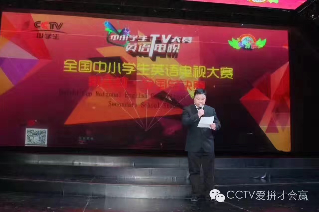 (2016年7月,西雅图中文电台台长苏小元在CCTV全国中小学生英语电视大赛开幕式上致辞)