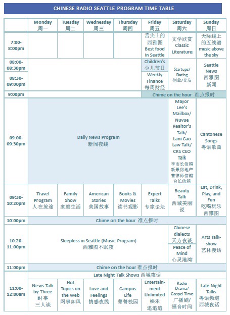 由于缩减了学生节目,学生主播岗位过剩,于是一部分学生分流出去,建立了华盛顿大学中文学生网上电台。我们当时急需一批专业的主持人担纲主播,居住在西雅图地区的不少精英人士都被我们吸纳过来。