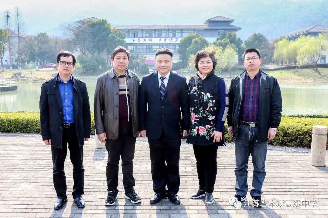 从左至右:吴中区侨联副主席汤晓亮、木渎中学校长张飞、苏小元、吴中区侨联主席顾炯文、木渎中学党总支书记黄生元。