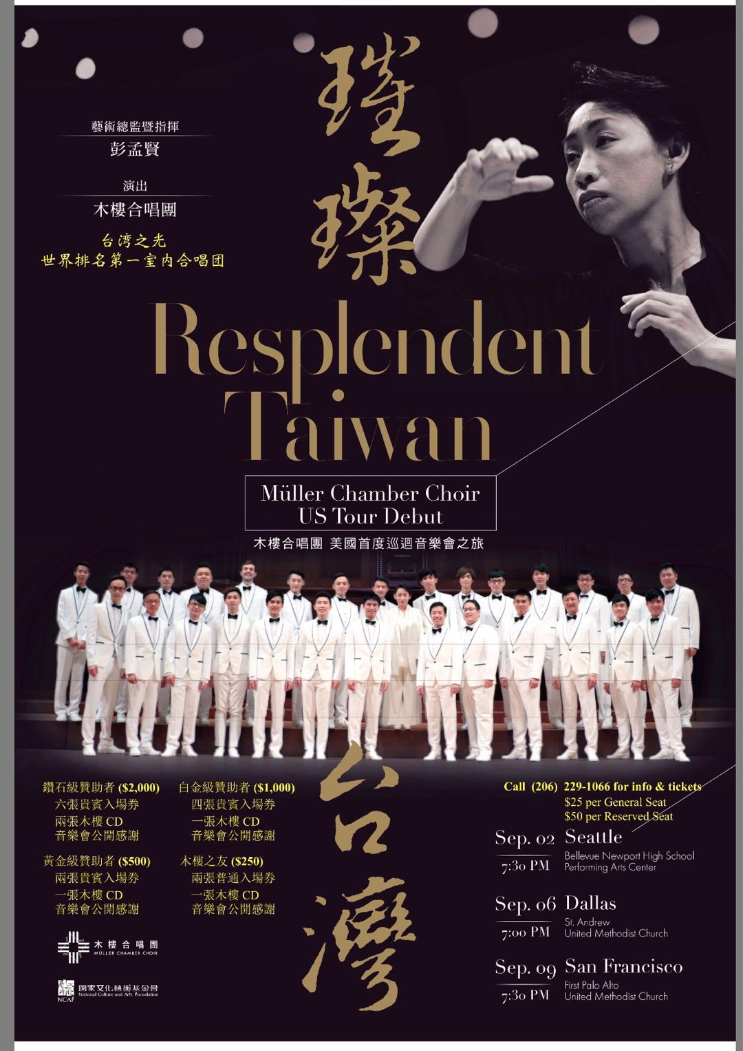 台湾之光,世界排名第一的室内合唱团「木楼合唱团」将于九月二日星期天晚间 7:30 假 Bellevue Newport High School 举行巡回美国的首演,欢迎各界爱好者莅临指导。票价:不划位 $25;贵宾席 $50。购票地点:Bellevue Toy’s Cafe (三和小馆) ,Seattle Young Tea at Chinatown。洽询专线:206-229-1066。