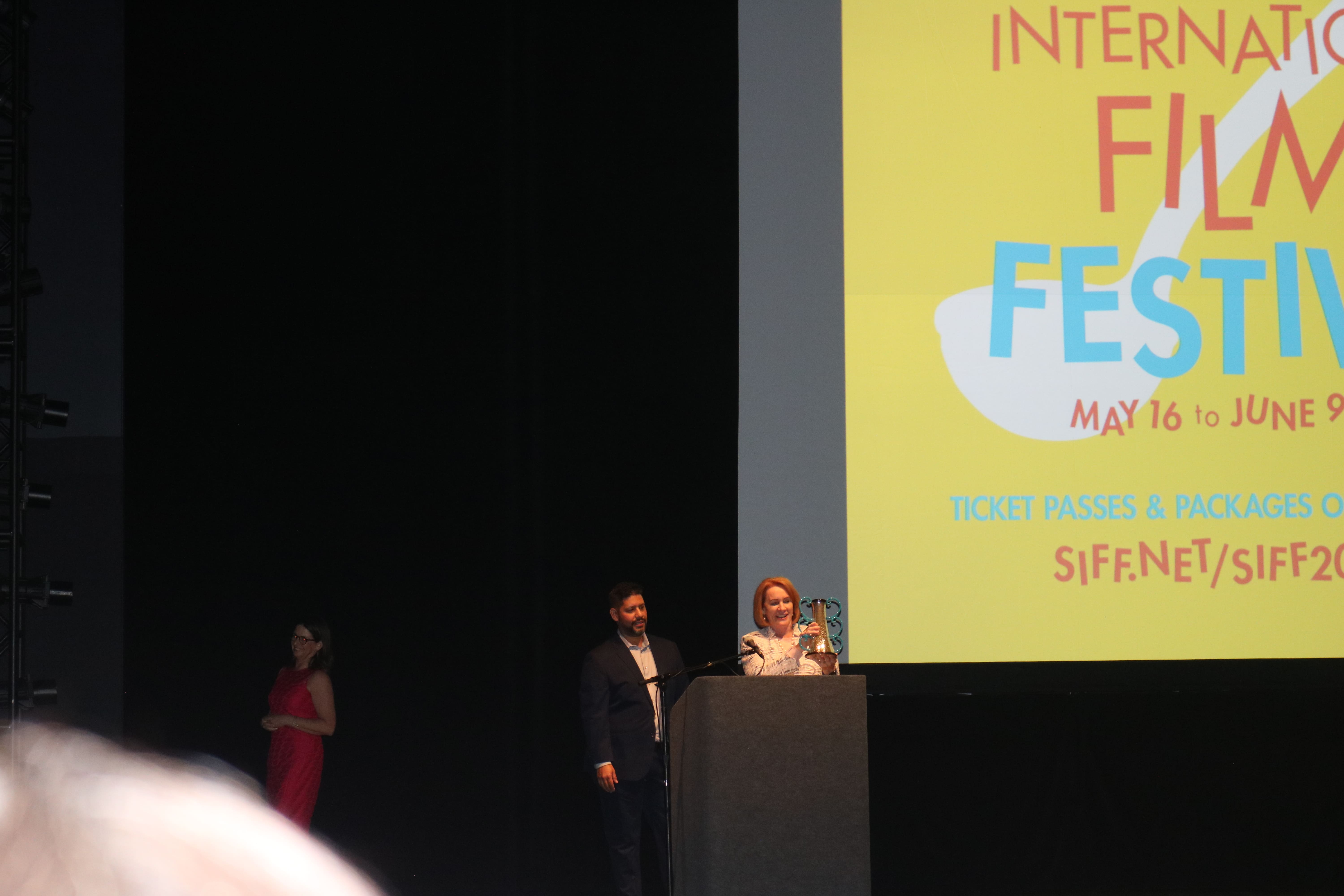 (西雅图国际电影节艺术总监Beth Barrett在开幕式上发言)