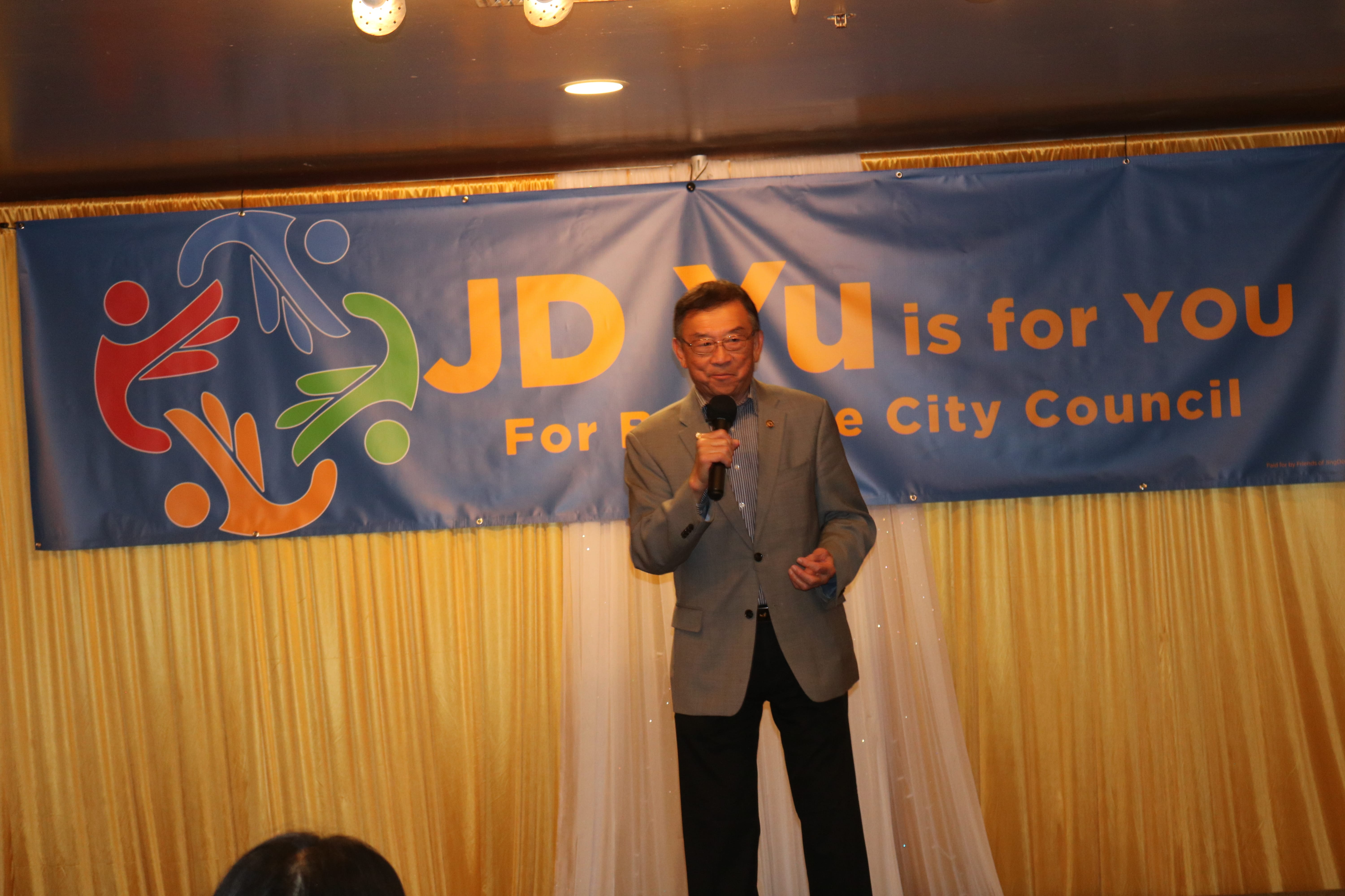 在T-mobile工作的工程师俞敬东宣布竞选华盛顿州金郡第二大城市贝尔维优(Bellevue)的市议员,并于2019年6月1日晚在西雅图中国城鱼跃门酒家举行竞选筹款晚宴。Bellevue共和党籍议员李瑞麟、Jared Nieuwenhuis为他站台表示支持,另一位该市市议员候选人Stephanie Walker也表示支持。以大西雅图地区华人社区支持者居多的300多人参加了这次筹款晚宴,北美美术家协会会长王学治教授表示,德高望重的李瑞麟议员年近八十,他需要一位接班人,而俞敬东是他最好的接班人;Bellevue市民代表藤胜毅医生从个人的角度表达了对俞敬东的支持。俞敬东以独立人士参选市议员,他的竞选对手是两年前当选为市议员的另一位华裔梁浩婷Janice Zahn。