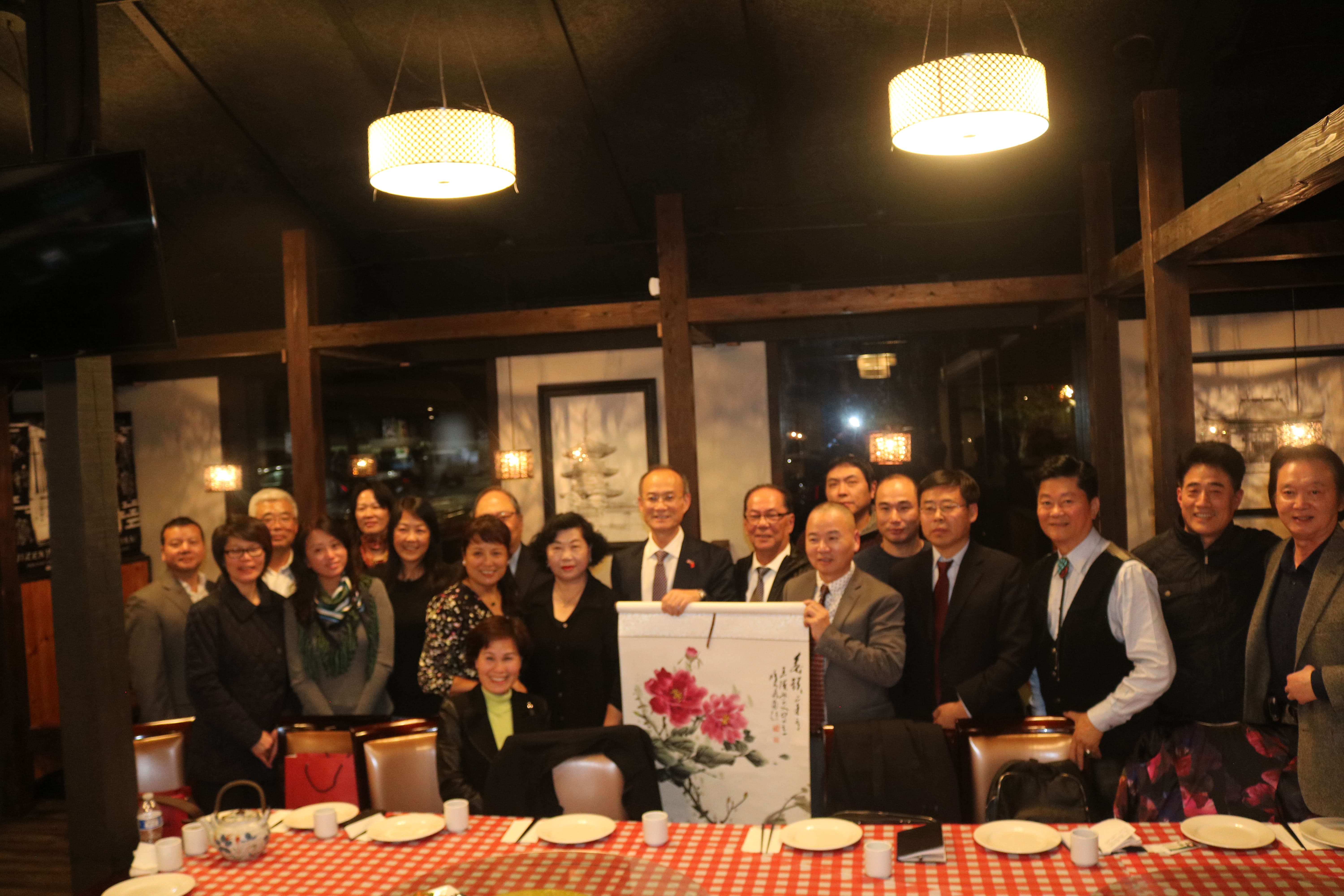 华盛顿州统一促进会副会长林绍长、WeCan集团董事长魏玉玲、华州贝尔斯台湾商会会长杨鼎、华州中美总商会董事局主席张海梁、华州中美总商会前执行会长董兆和、华为美国分公司高管Jennifer Li、华州统一促进会成员Eva Wang等在座谈会上纷纷发言,表示希望祖国强大,希望祖国早日和平统一。欢迎晚宴在Bellevue的知味川菜餐馆举行。