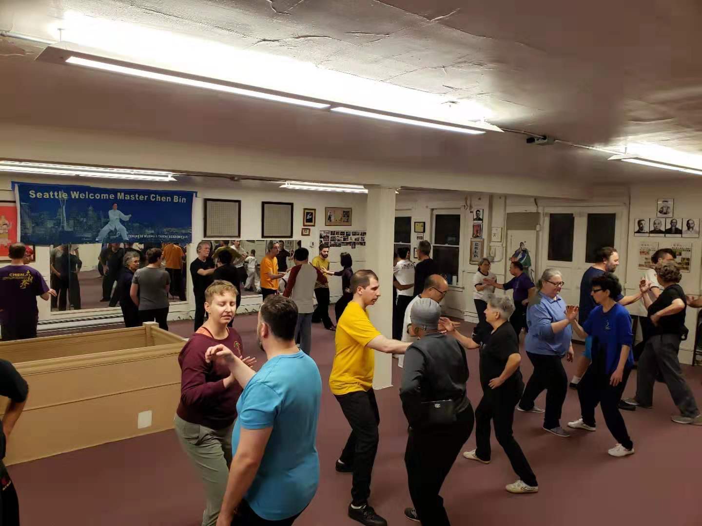 从陈斌老师朋友圈的内容中,更能感受到其中的精彩:一分耕耘,一分收获。昨晚缠丝劲课程开班前,西雅图地区的负责人、师姐妹洪一姣老师一句浓缩性的介绍,一下子就点燃了现场的热情:“21年前,我的师父陈正雷大师开始来西雅图传播太极,每年坚持不懈,才有了当今的累累硕果;今天,我的师兄陈斌老师,开始接过他父亲、我们师父的接力棒,继续来给我们传经送宝。让我们诚挚地说一声,西雅图欢迎您!”