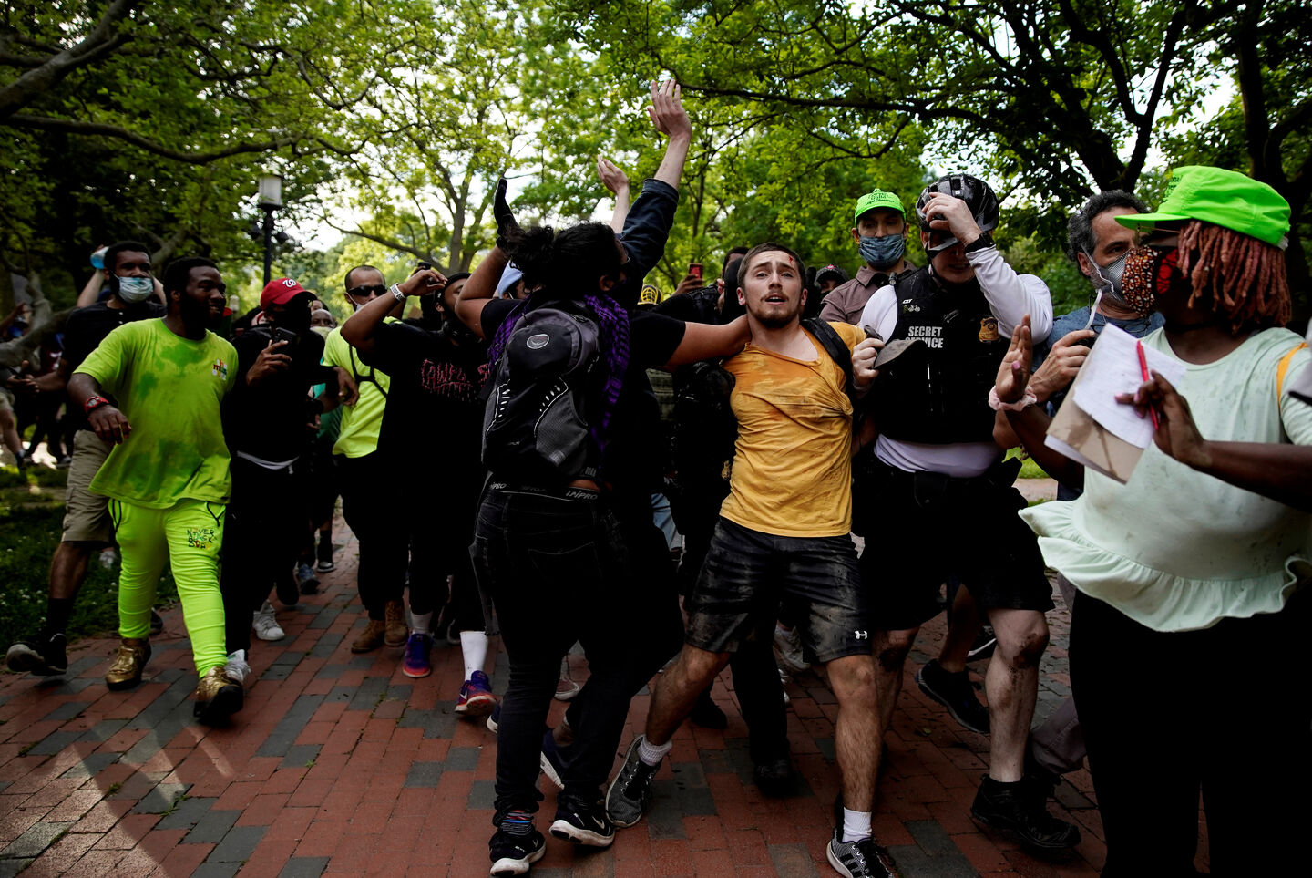 弗吉尼亚州亚历山大市弗吉尼亚神学院(Virginia Theological Seminary)的学生朱莉娅·多米尼克(Julia Dominick)曾是一名急诊室护士,当警察向前推进时,她正在照顾一名受伤的抗议者。