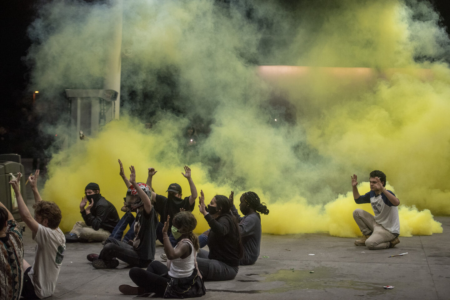 “没有任何警告,”她说。“我从来没参加过战争。我从来没中过枪。我从来没那么害怕过。那些枪声和烟雾,将伴随我一生。”(没有任何警察机构承认使用了催泪弹,但现场记者和抗议者说绝对存在某种化学刺激物。)