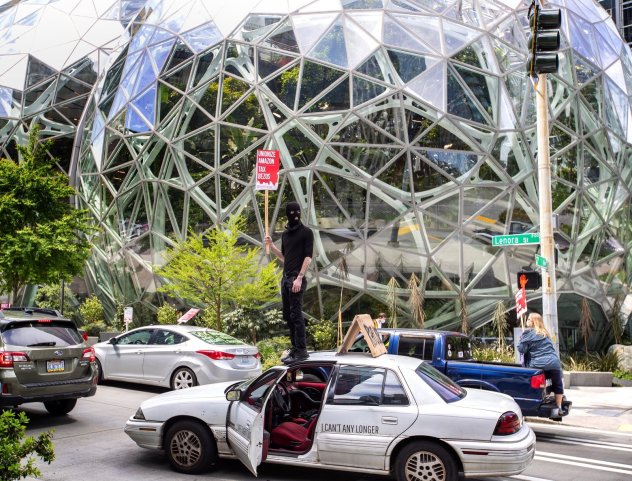 - 示威者放火烧了几辆西雅图警察局的车辆;