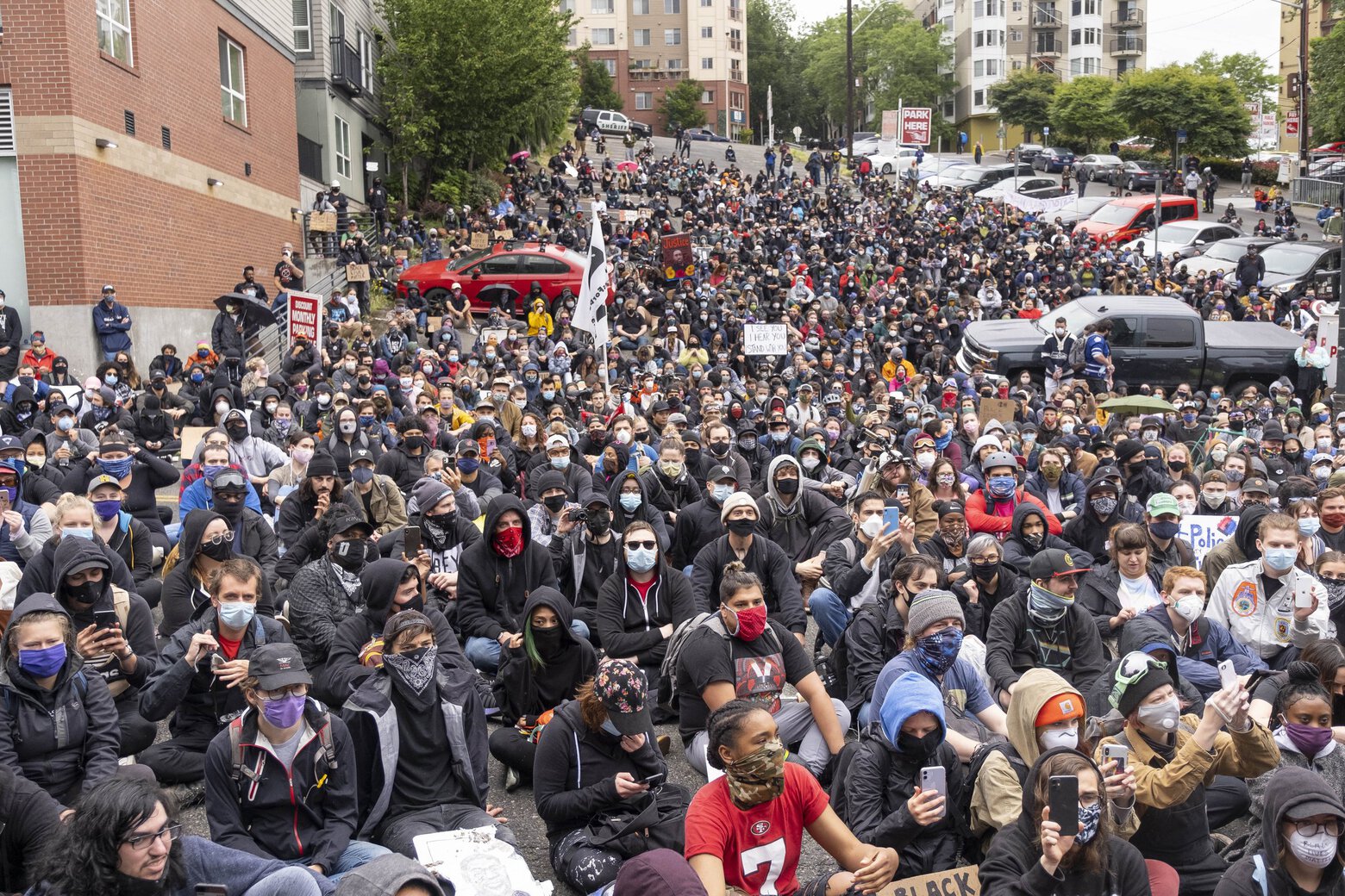 上周末,大规模抗议活动使人们涌入西雅图市中心示威,以抗议种族不公正现象。专家和公共卫生官员警告说,示威游行是新冠大流行宣布以来的首次大型集会,可能会使阻碍该地区从新型冠状病毒中恢复。许多示威者戴着口罩,但是人群拥挤,使得防止病毒传播的社会隔离没有可能实施。