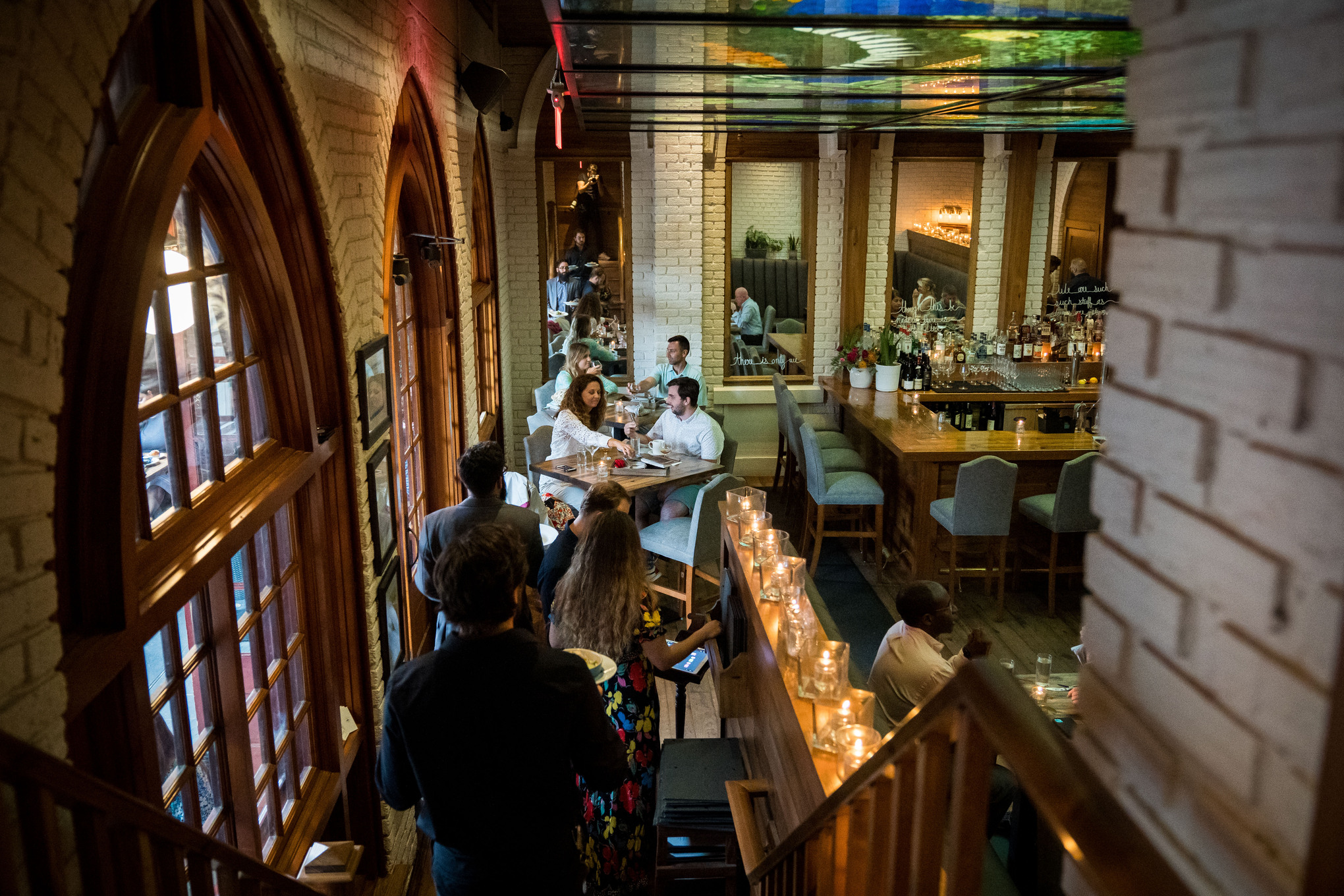 在西雅图湖城附近的一家啤酒厂 Hellbent Brewing,业主表示他们很高兴老板重新开放了他们的酒吧顶部,这样顾客就可以再次坐在调酒师对面并近距离与他人进行交谈。