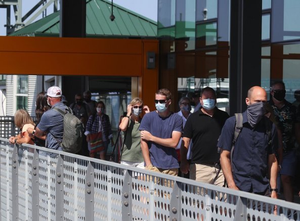 人们在乘车时不需要戴口罩。户外不需要戴口罩,包括看台音乐会和牛仔竞技表演,但博览会建议人们“在无法保持社交距离时”戴口罩。