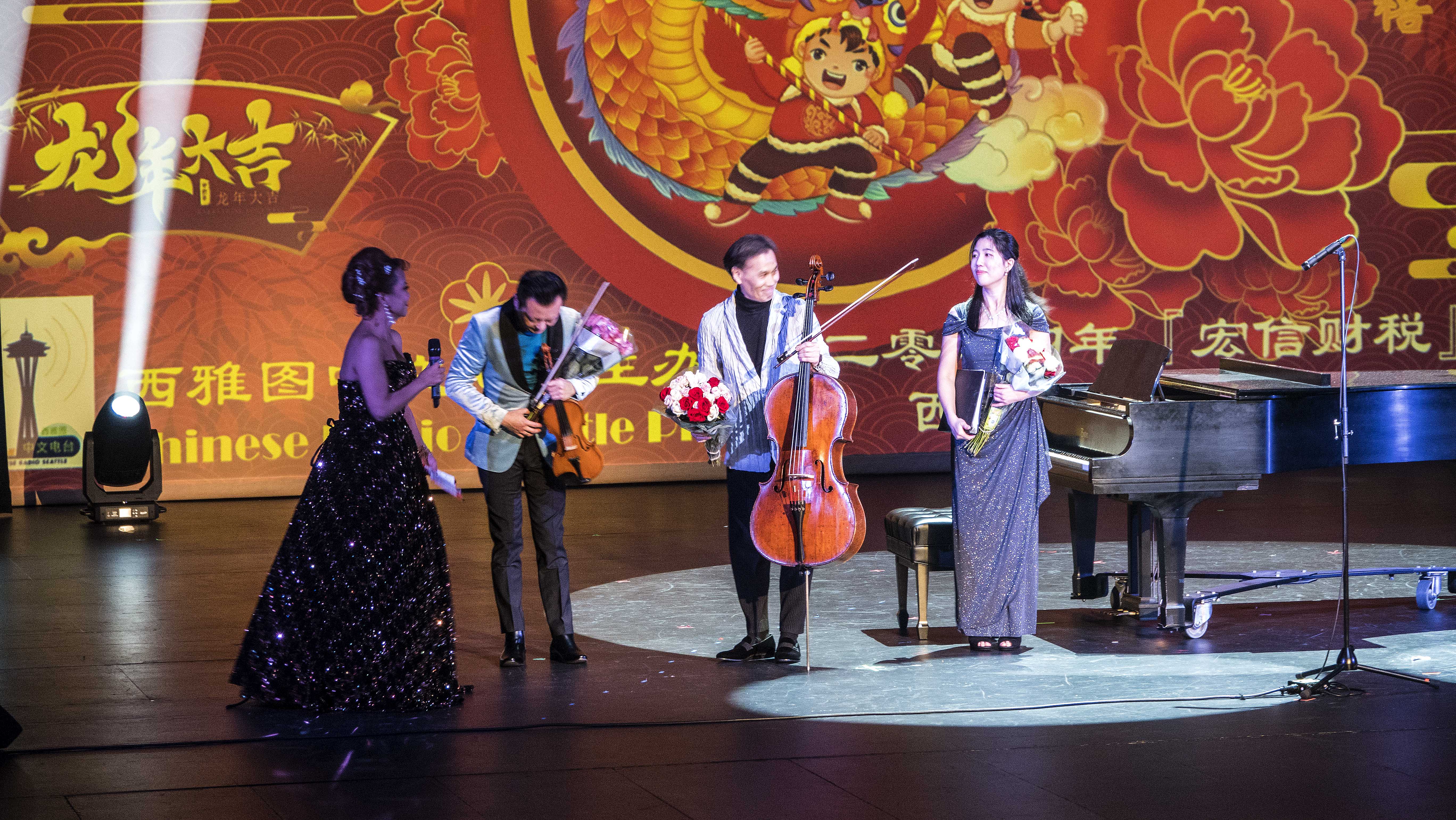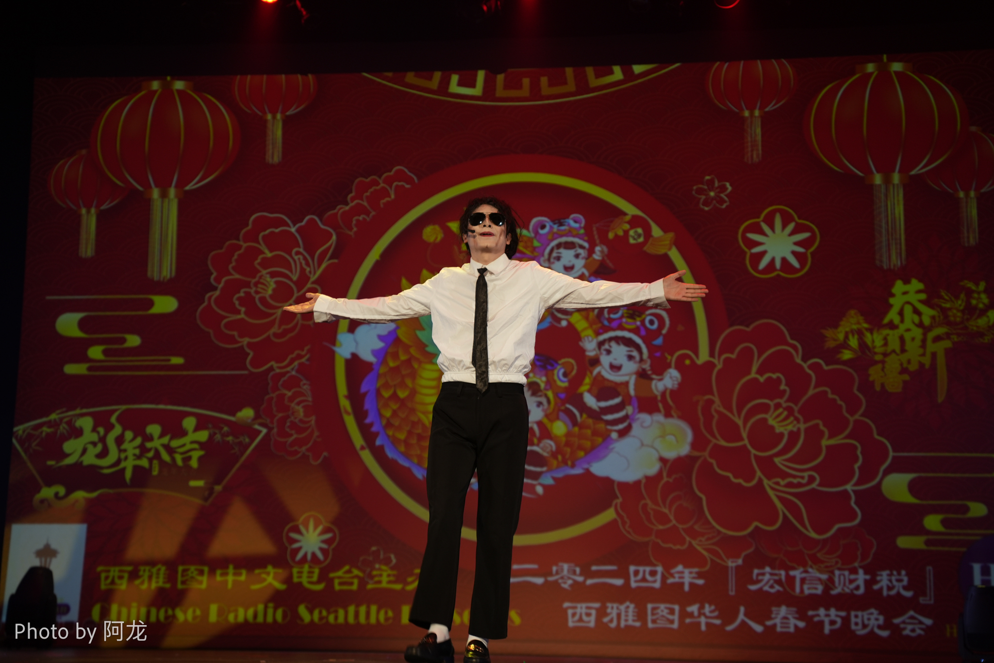 由宏信财税集团公司冠名的2024年西雅图华人春晚于2月24日下午和晚上在华盛顿州贝尔维尤的梅登堡剧场隆重演出两场,来自中国的世界迈克尔.杰克逊的传承者第一人王杰克逊、有“中国变脸王”之称的四川省川剧院演员蒋进,以及西雅图本地的20多个演出团体和个人,为观众奉献了精彩的文艺节目。大西雅图地区的五名华裔议员,包括李瑞麟(Conrad Lee)、梁浩婷(Janice Zahn)、胡清雅(Tanya Woo)、孙荣芬(Sun Burford)和陈伟(Will Chen),以及西雅图港务局局长、西雅图移民和难民事务部主任Hamdi Mohamed,西雅图港务局专员、西雅图战略倡导办公室主任Sam Cho,金县行政长官办公室代表James Bush,Bellevue市议员Jared Nieuwenhuis、Burien市长Sofia Aragon等前往观看了西雅图华人春晚。西雅图市长布鲁斯.哈雷尔为晚会发来了祝贺视频。