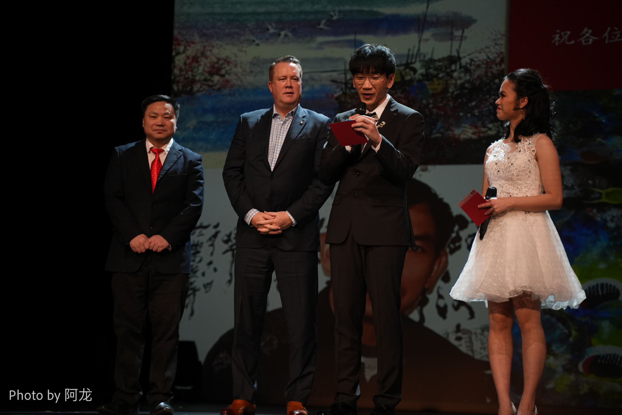 金县行政长官道.康斯坦丁办公室代表James Bush和Bellevue市议员Jared Nieuwenhui参加了下午场的抽奖活动,本次春晚的白金赞助商大中华实业公司总裁张斌的代表Hanson Chong、曹霄鹤律师事务所所长曹霄鹤律师参加了晚场的抽奖活动。
