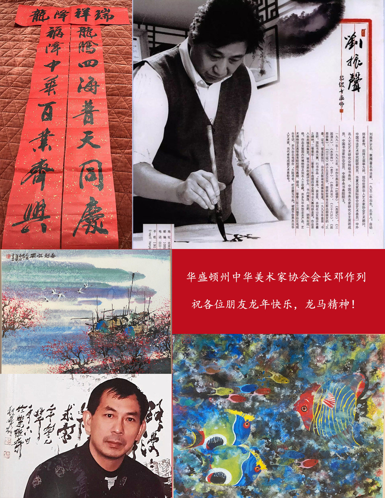 (曹霄鹤律师事务所所长曹霄鹤(左二)抽奖,知名旅美画家邓作列颁奖(下图右二))