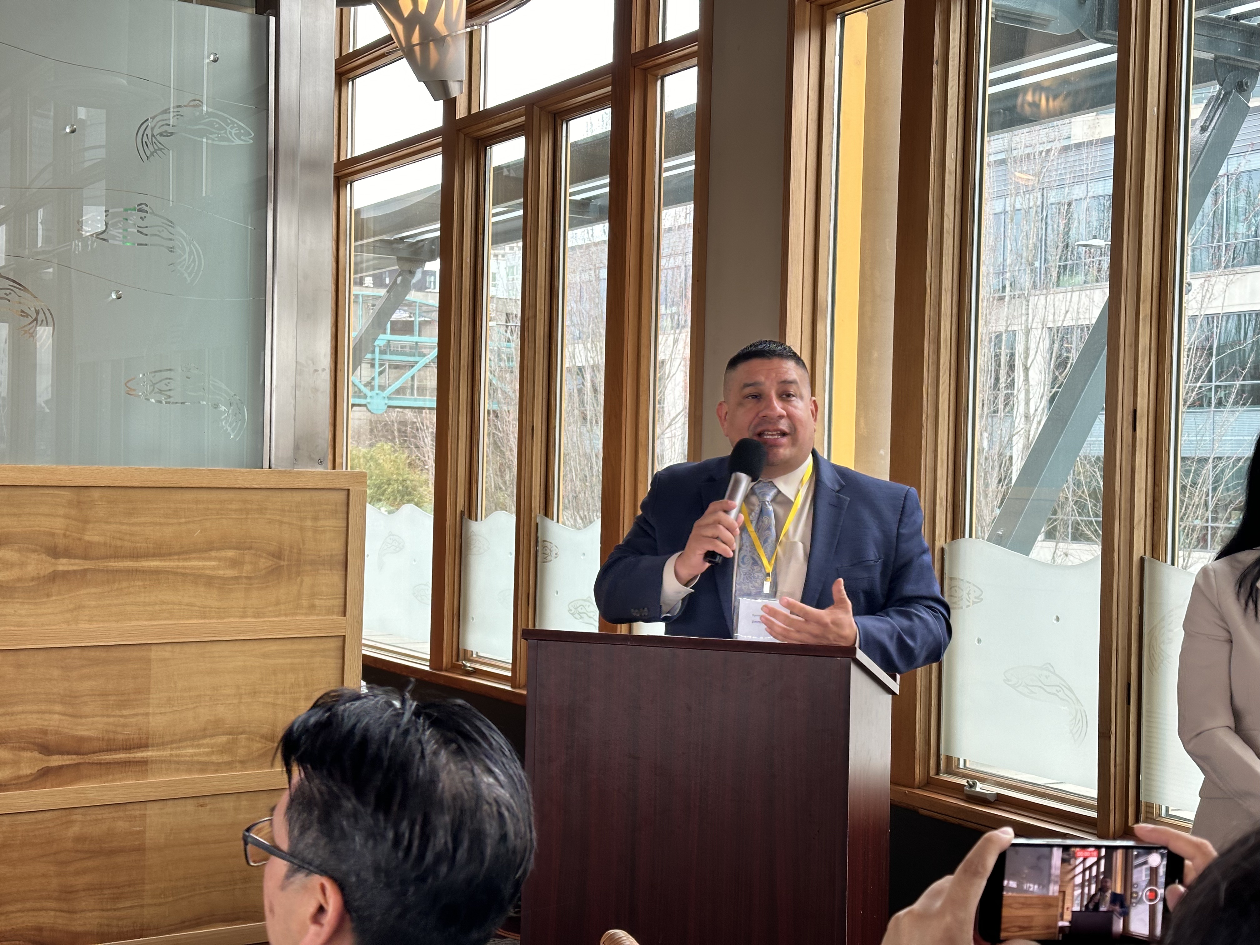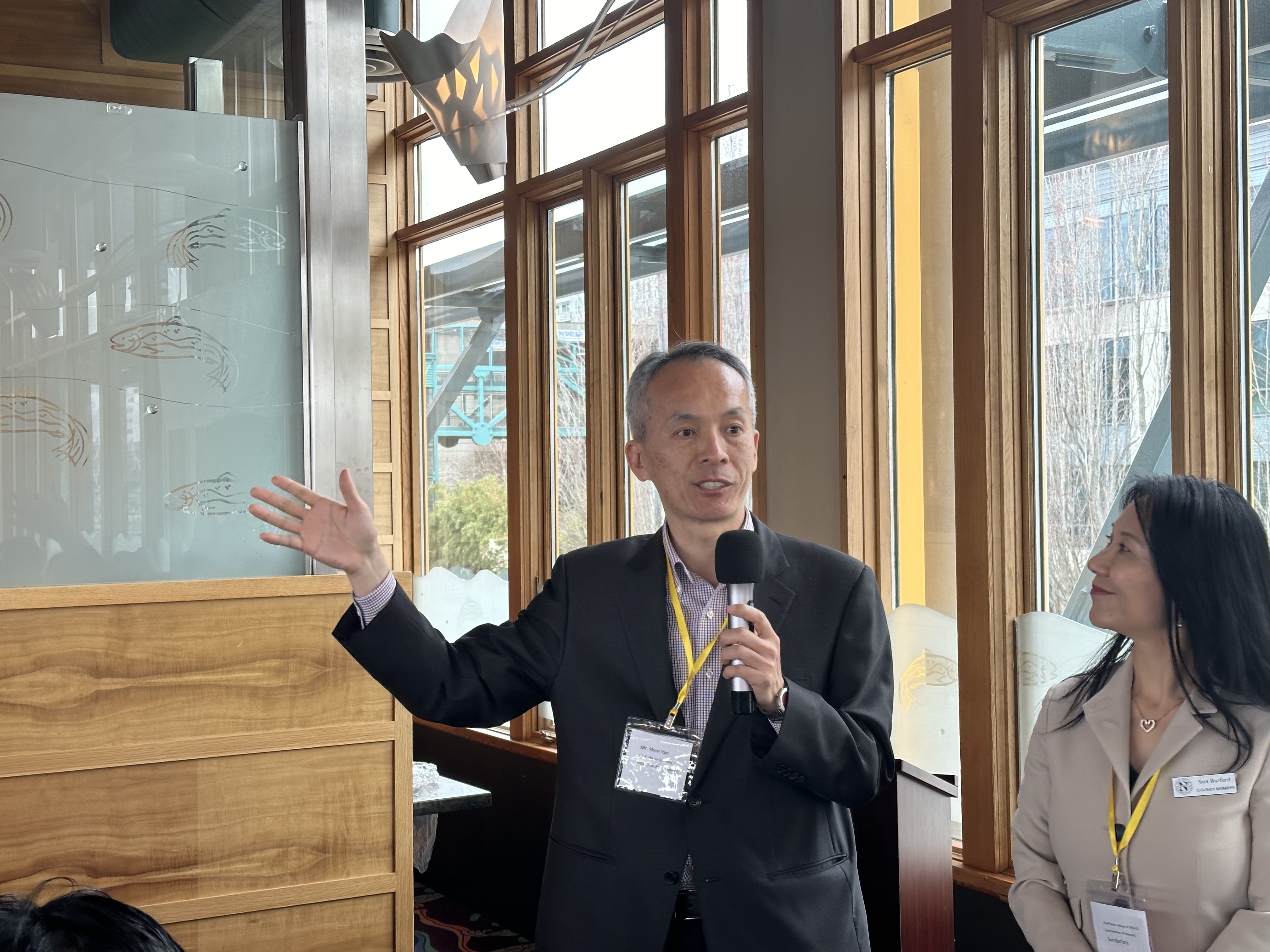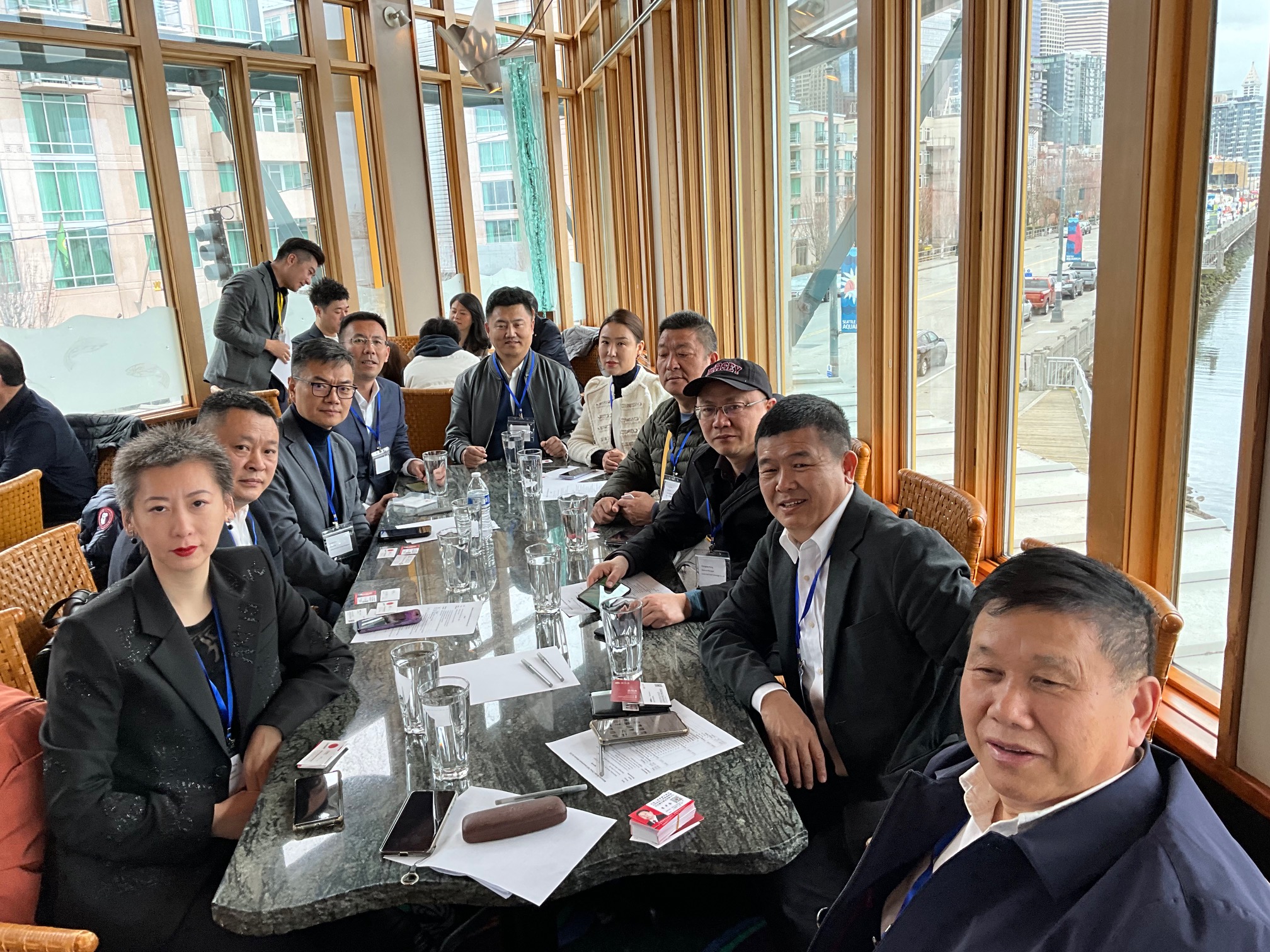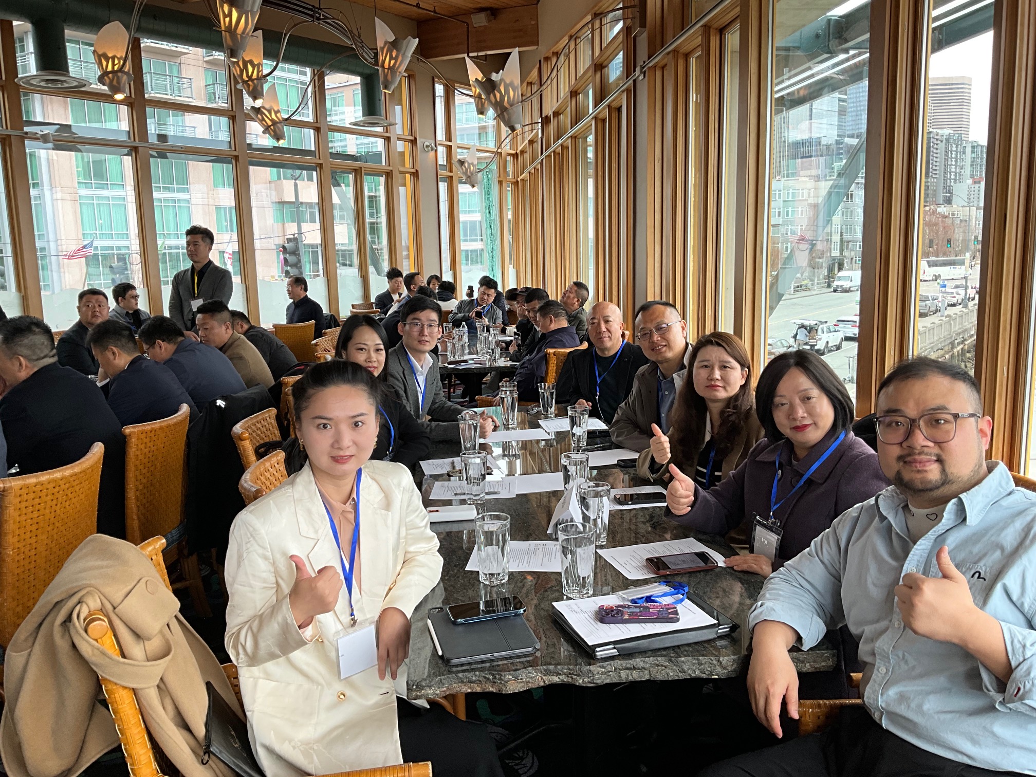 由美国驻华大使馆商务高级专员Yan Shen和Sherry Cai带队,中国餐饮企业赴美投资考察团到访西雅图,2024年3月20日周三上午代表团出席由华盛顿州美中贸易促进会在Anthony‘s on Pier 66举办的研讨会。研讨会邀请了大西雅图地区的政府官员,其中包括华盛顿州参议员Bob Hasegawa、华州商务部部长方威武(Mike Fong)、金郡行政长官办公室代表James Bush、贝尔维尤市市长Lynne Robinson、布瑞恩市议员、前市长Jimmy Matta以及华州印度贸易关系行动委员会联合主席Debadutta Dash,皆上台致辞欢迎来自中国的考察团。西雅图市议员胡清雅Tanya Woo、Bellevue前副市长Jared Nieuwenhuis、西雅图港务局局长、西雅图移民与难民事务办公室主任Hamdi Mohamed等出席了研讨会。华盛顿州副州长Denny Heck、前华州州长、前美国驻华大使骆家辉、前华州副州长Brad Owen通过视频向研讨会表示祝贺。骆家辉还出席了于周三晚上举行的晚宴。