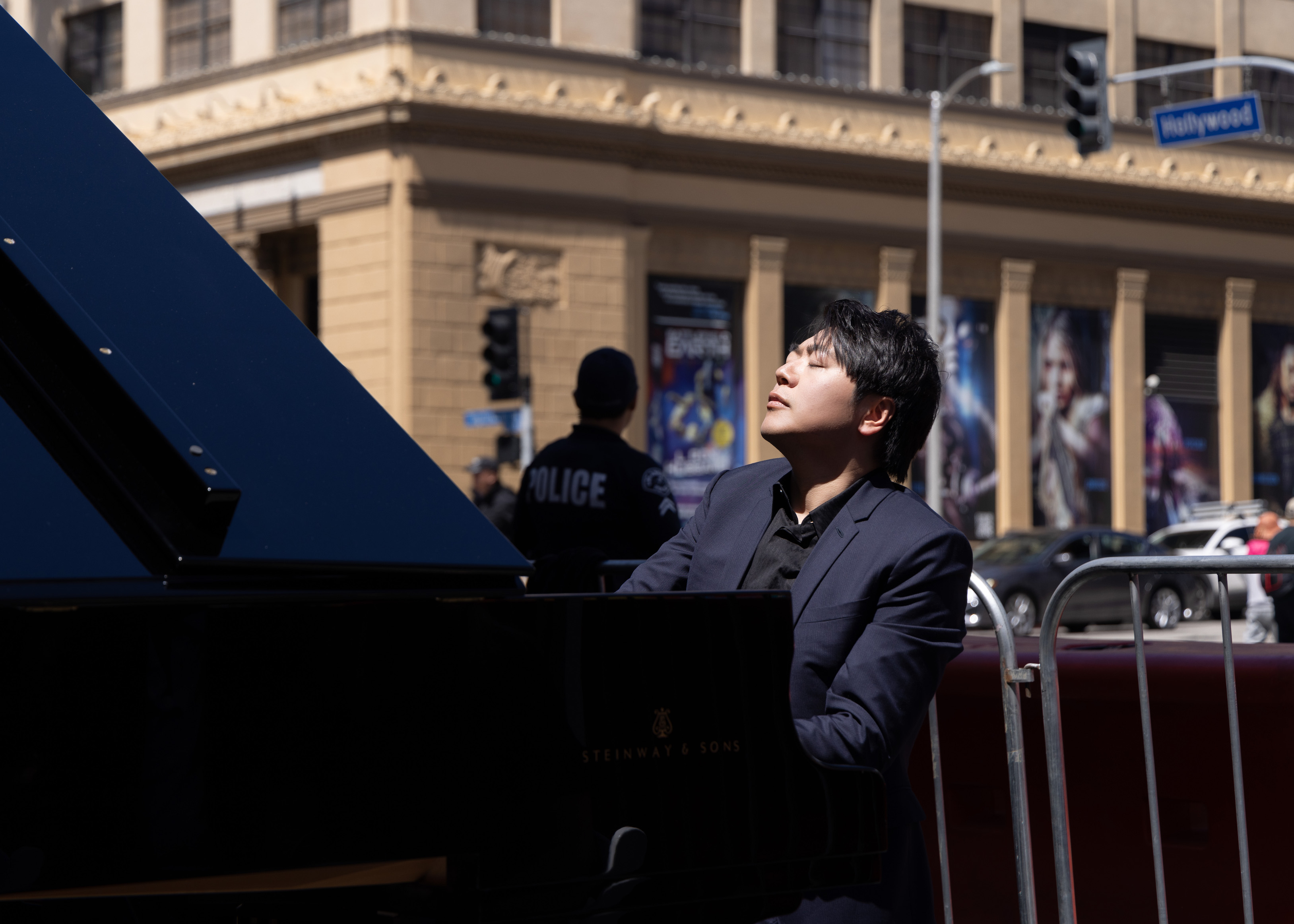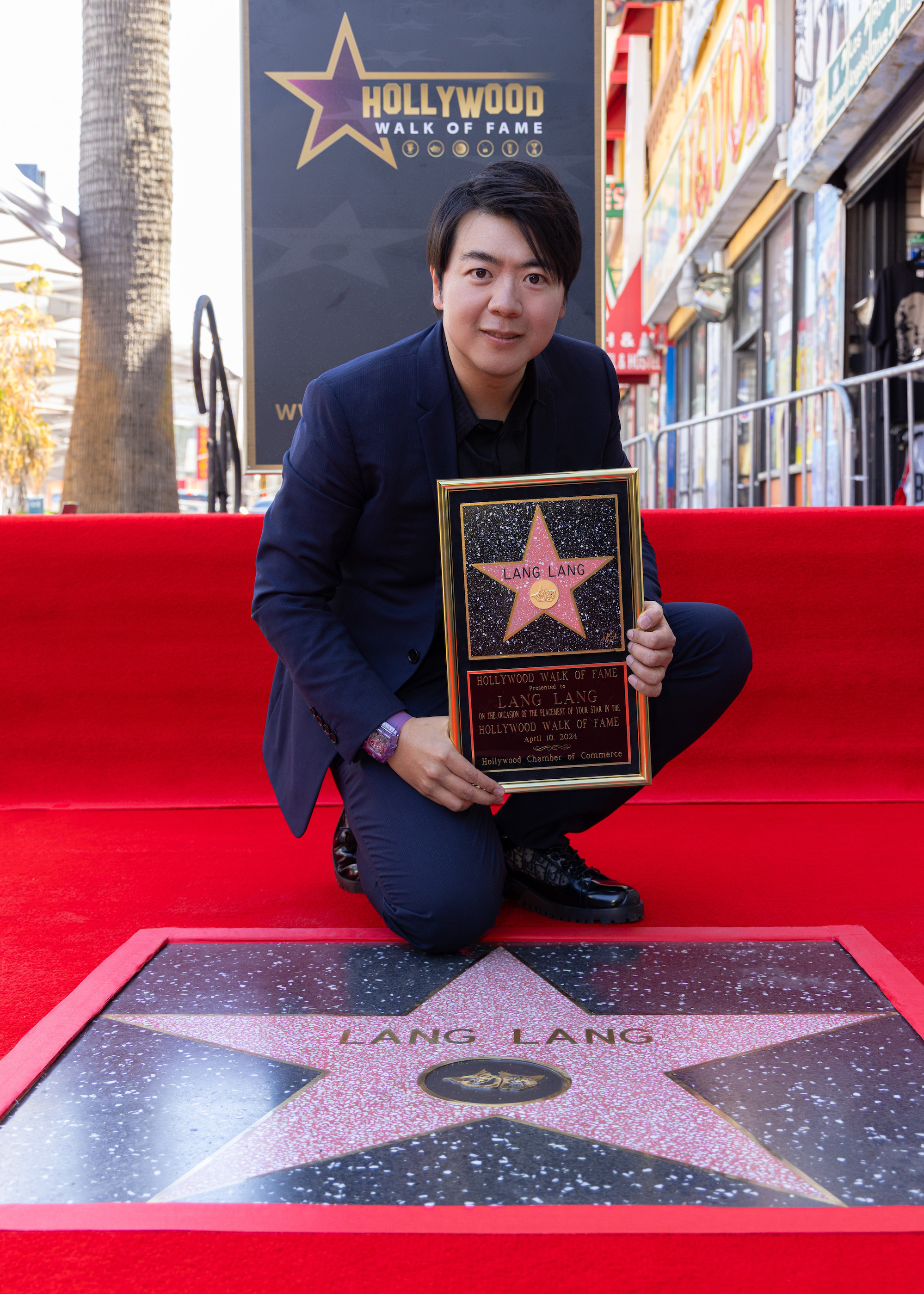 (美国加州洛杉矶,4月10日)— 世界著名的古典钢琴家郎朗于美西时间2024年4月10日星期三上午在好莱坞星光大道(Hollywood Walk of Fame)出席授星仪式,作为有重大贡献的世界顶级钢琴家获此个人星印,荣登好莱坞名人堂,是有史以来中国第一位获此殊荣的音乐家,也是首位亚洲钢琴家。20世纪仅有伟大古典钢琴家霍洛维茨、鲁宾斯坦、塞尔金、帕德雷夫斯基拥有好莱坞星光大道上的一颗星,而进入21世纪,郎朗还是第一位。授星仪式由好莱坞商会总裁兼首席执行官史蒂夫·尼森(Steve Nissen)主持,环球音乐集团全球古典与爵士乐部门总裁兼首席执行官迪肯·斯坦纳(Dickon Stainer)和环球音乐集团执行副总裁米歇尔·安东尼(Michele Anthony)先后发言祝贺。
