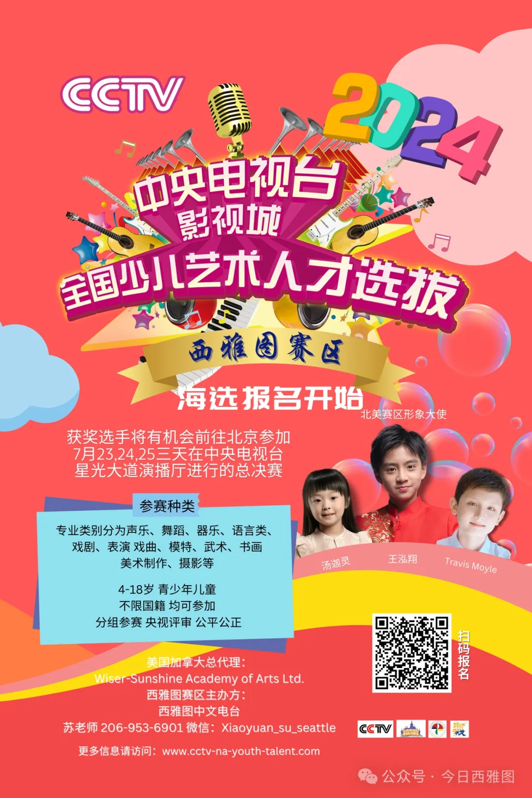 重磅:2024年中央电视台影视城少儿才艺选拔赛“西雅图赛区”报名开始