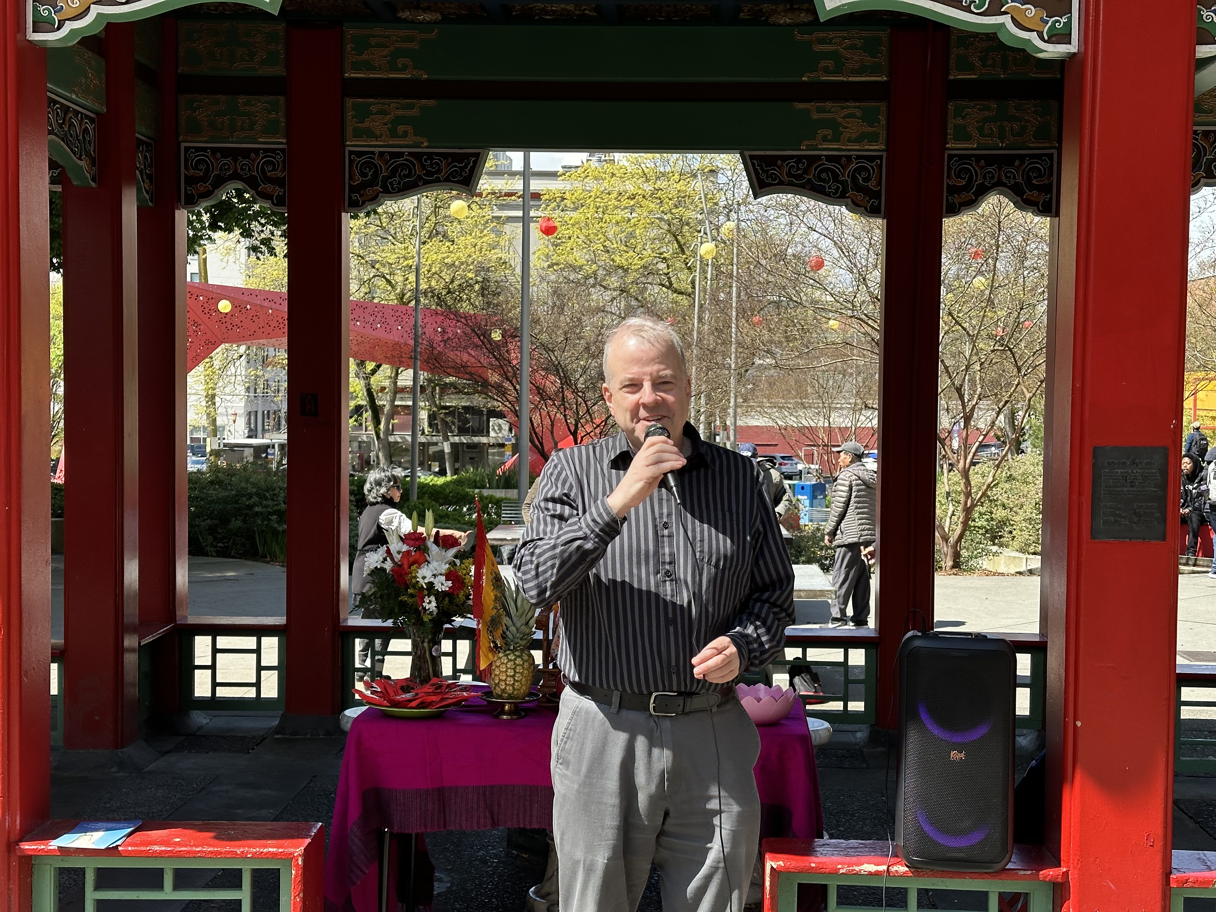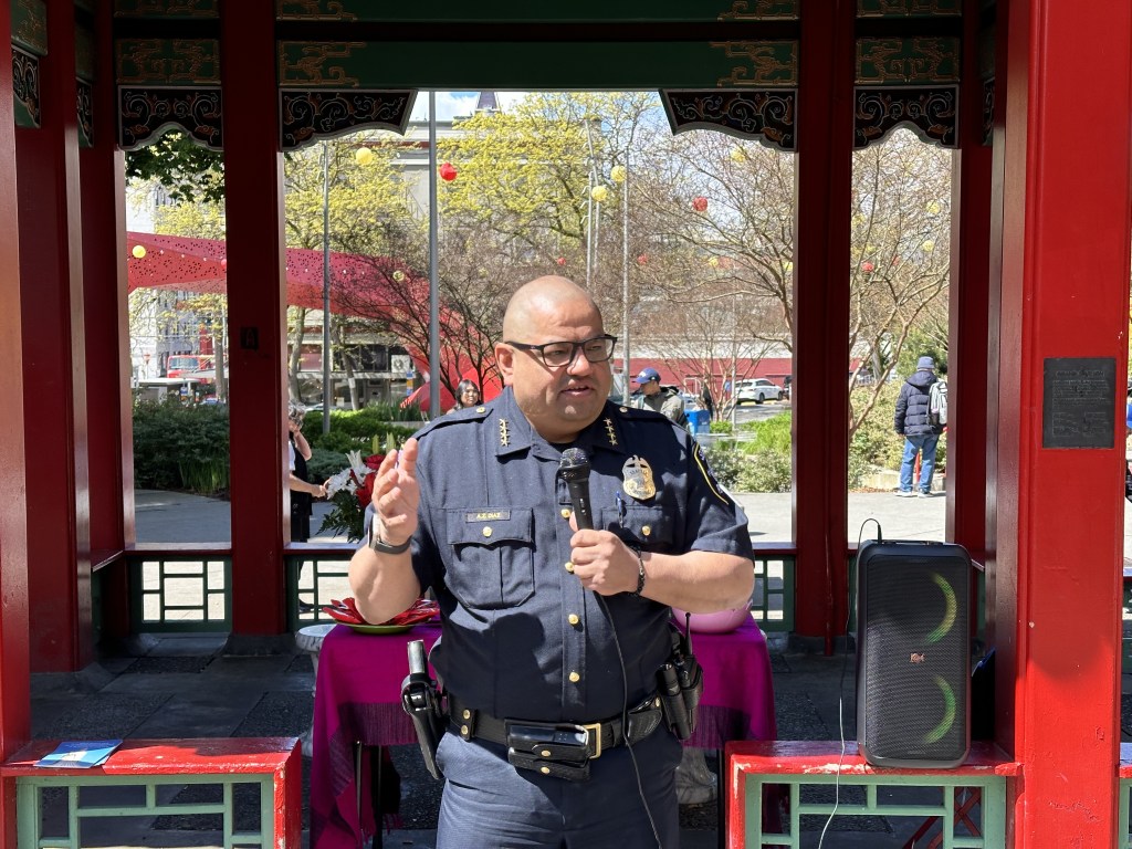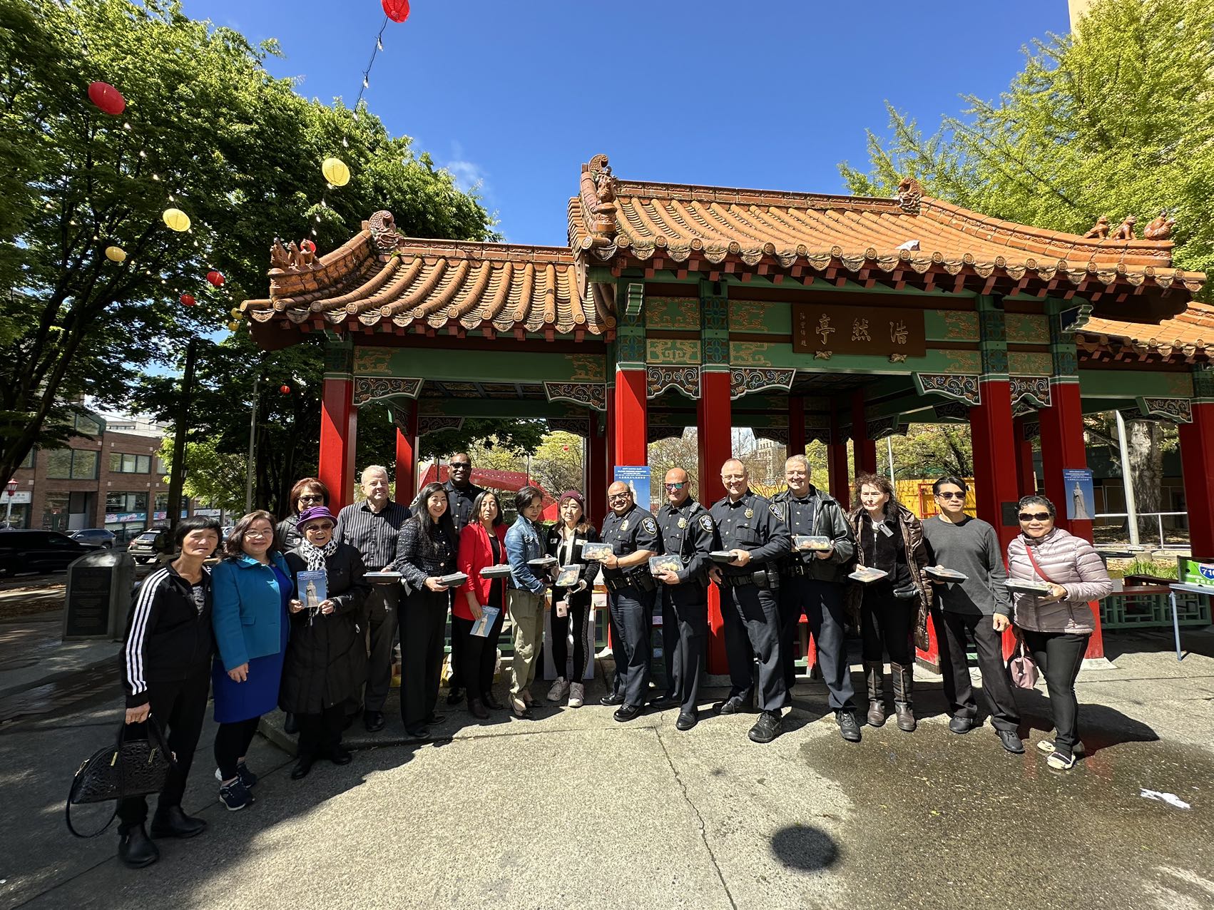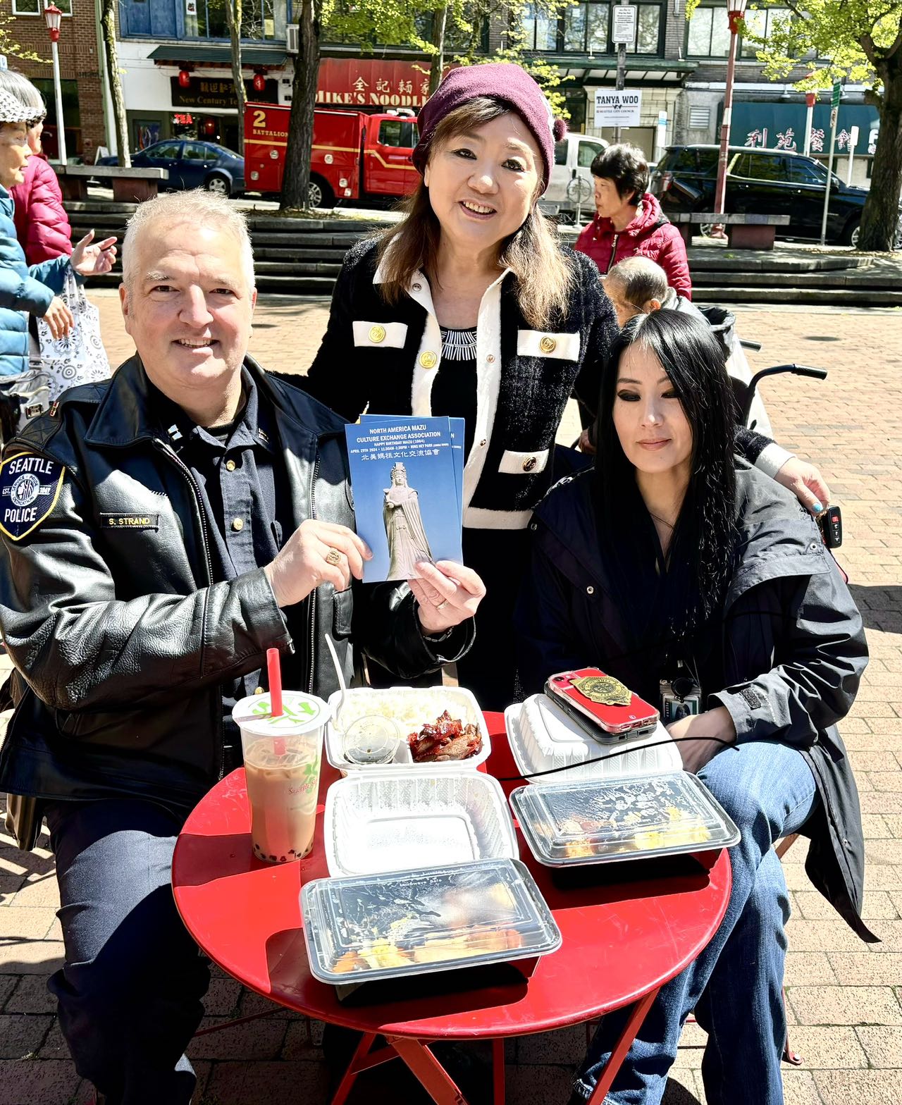【西雅图中文电台报道,记者:Ian】为庆祝妈祖1064岁的生日,北美妈祖文化交流协会于4月29日在西雅图庆喜公园举办庆祝活动,同时也借此机会感谢警消人员对西雅图唐人街的照顾!北美妈祖文化交流协会创办人兼主席王娟珠在活动上说:“妈祖是渔民和所有追随她的人的保护神,警消人员是我们的守护天使。我想借此机会让更多的人知道,唐人街是一个可以经常来吃饭及拜访地方,因为我们有这样可靠又可爱的团队!” 庆祝活动上,北美妈祖文化交流协会为警察和消防人员提供了150 份午餐盒,感谢巧巧提供了叉烧饭,法兴禅寺的师父更做了好吃的素食,还有天仁茗茶提供了饮料!