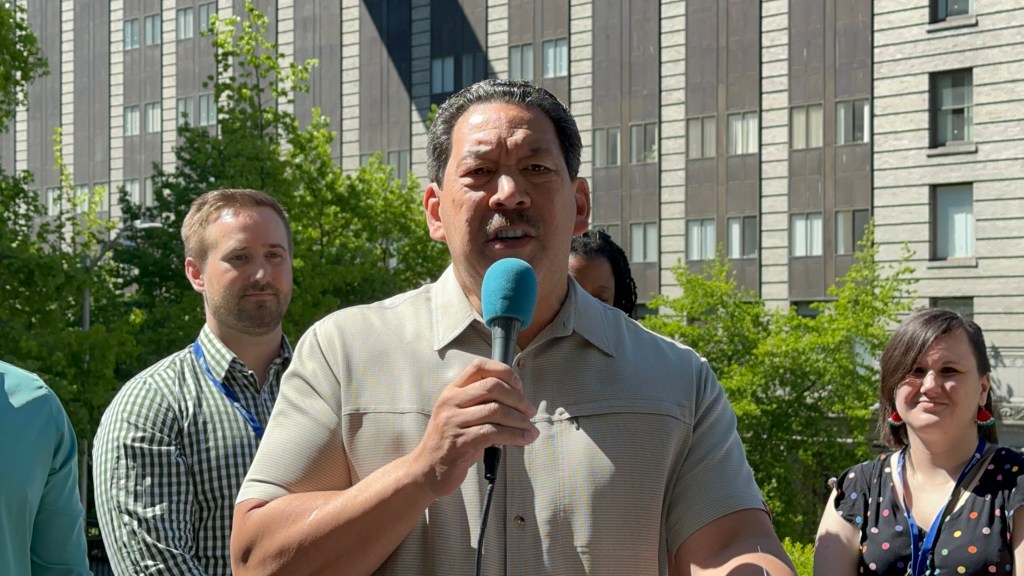 西雅图 — 2024年6月7日,周五早上,布鲁斯·哈雷尔(Bruce Harrell)市长与西雅图 LGBTQ 委员会、社区组织和西雅图市议会成员合作,在市政厅升起 LGBTQ+ 彩虹旗。