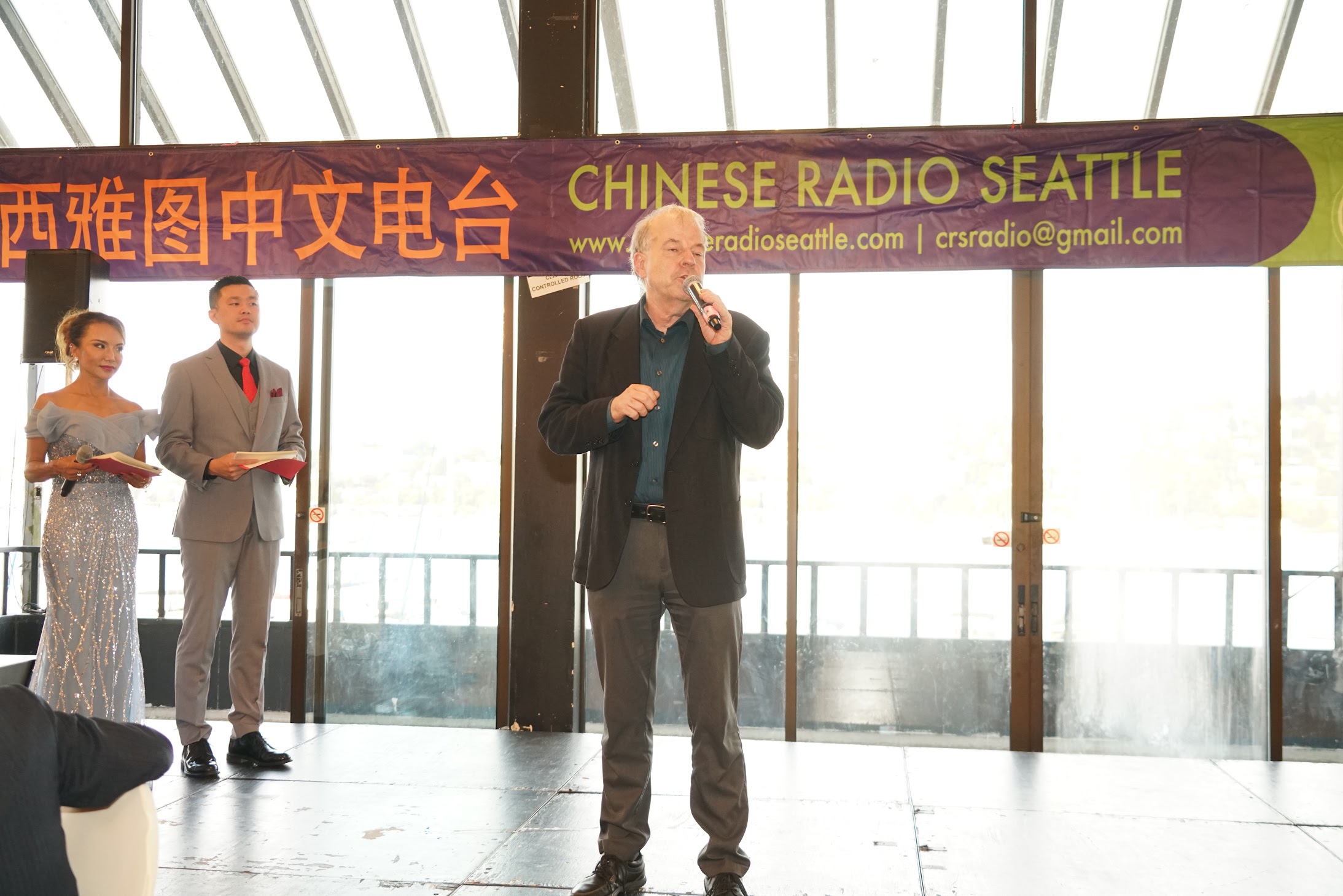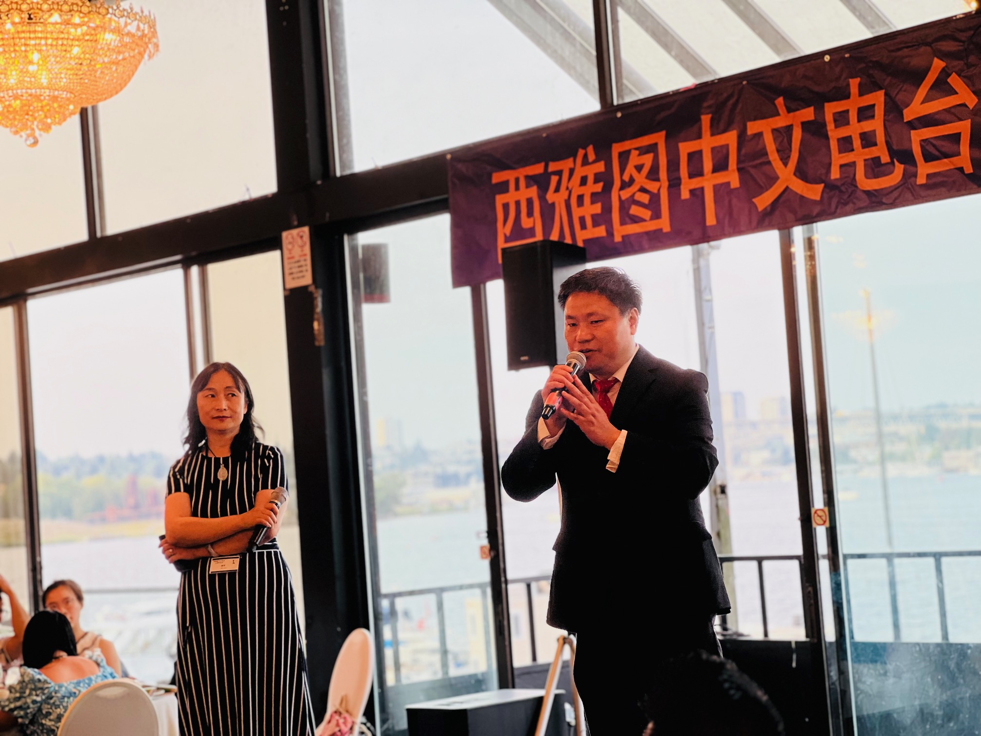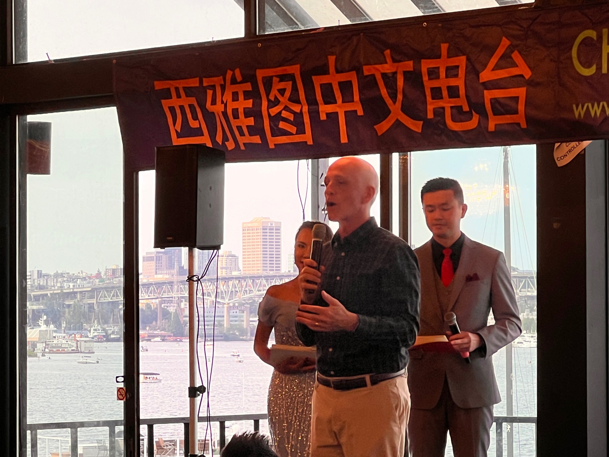 苏小元台长在欢迎词中说,西雅图的华人社区拥有一个华人自己的声音、华人自己的媒体,非常的宝贵,他举例子说,在2023的选举中,西雅图中文电台全力支持的市议员候选人孙荣芬(Sun Burford)、梁浩婷(Janice Zahn)、以及胡清雅(Tanya Woo)均当选为各自城市的市议员;另外当海湾交通公司原计划将轻轨站建立在西雅图中国城之时,西雅图中文电台及时采访了相关社区人士,并通过中文电台的平台呼吁抗议活动,最后Sound Transit取消了轻轨路线通过中国城的计划;还有西雅图市长布鲁斯.哈雷尔还是市长候选人的时候,在接受西雅图中文电台专访时,我们向他提议上任后致力于将西雅图超音速队(原NBA球队)带回到西雅图,结果哈雷尔市长在今年的市情咨文演说中,提到了这个计划,这是前所未有的。国会议员亚当.史密斯等嘉宾在致辞中肯定了西雅图中文电台在华人社区所做的贡献。苏小元台长感谢并希望华人社区继续支持西雅图中文电台。