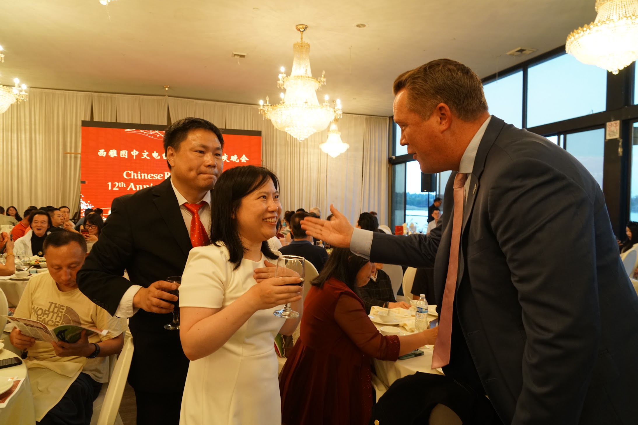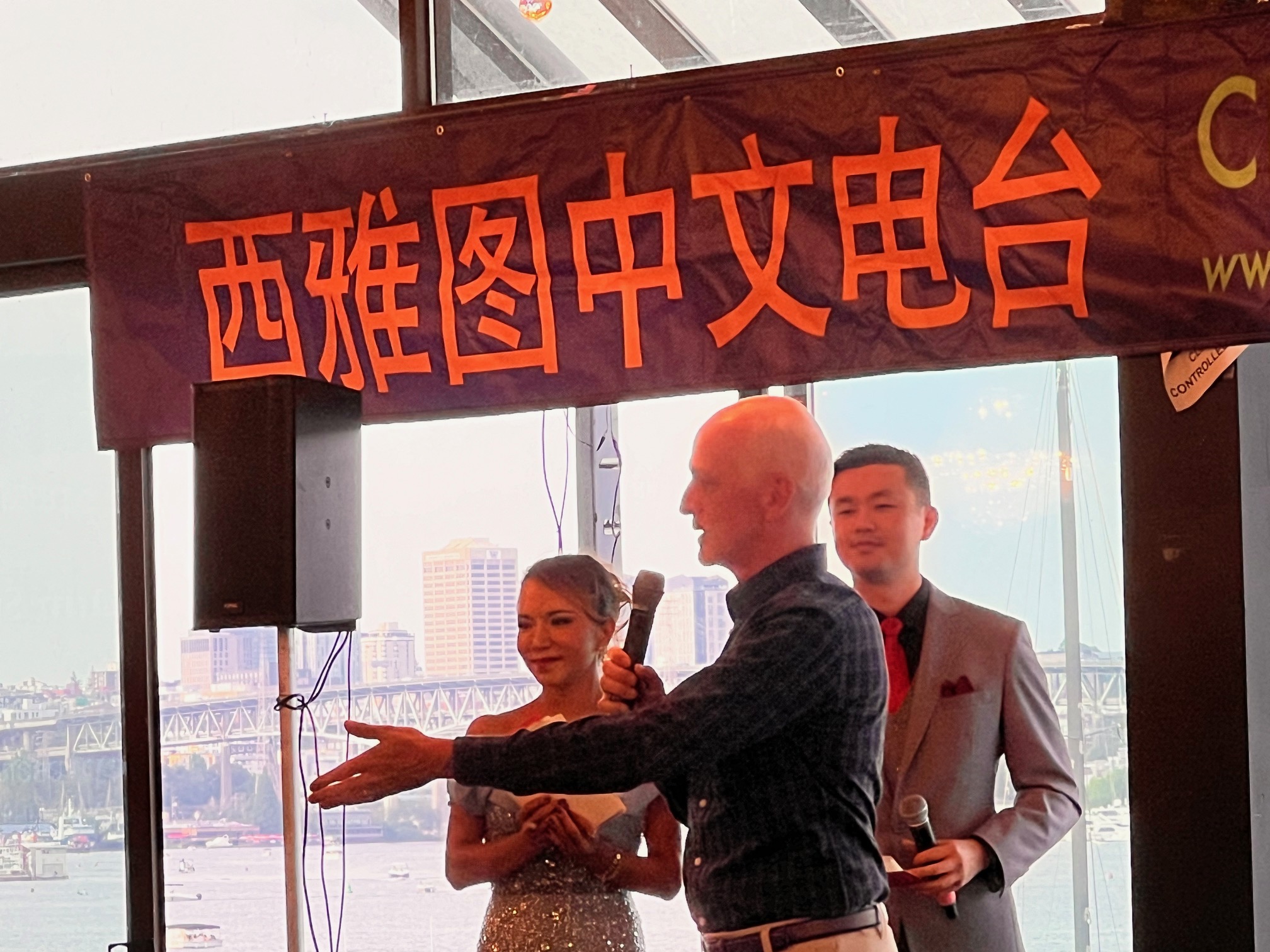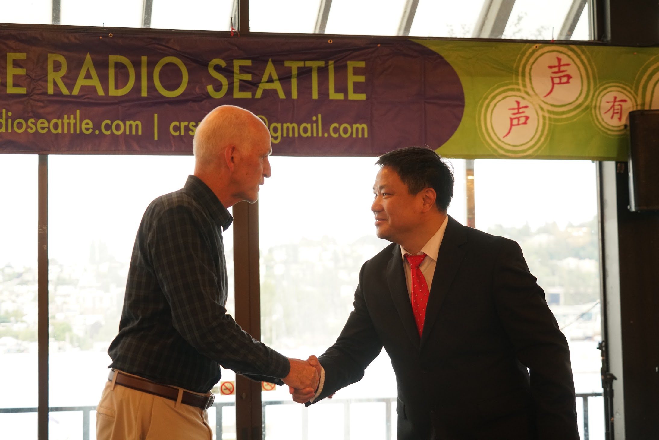 (美国国会议员Adam Smith到场祝贺西雅图中文电台12周年台庆)
