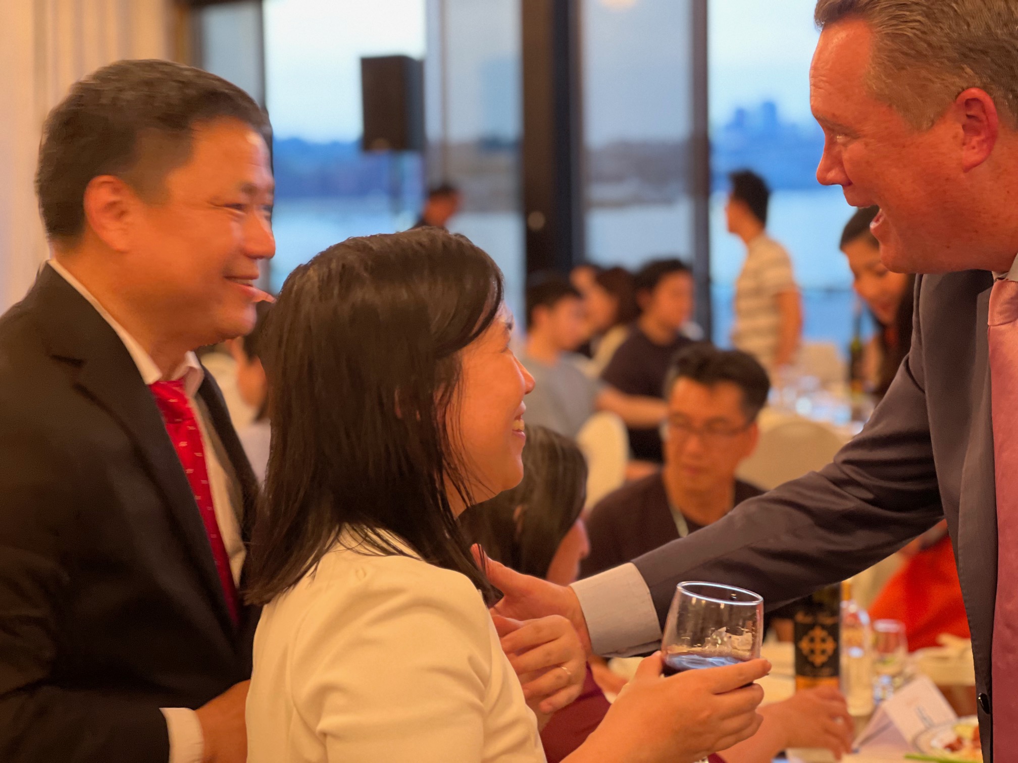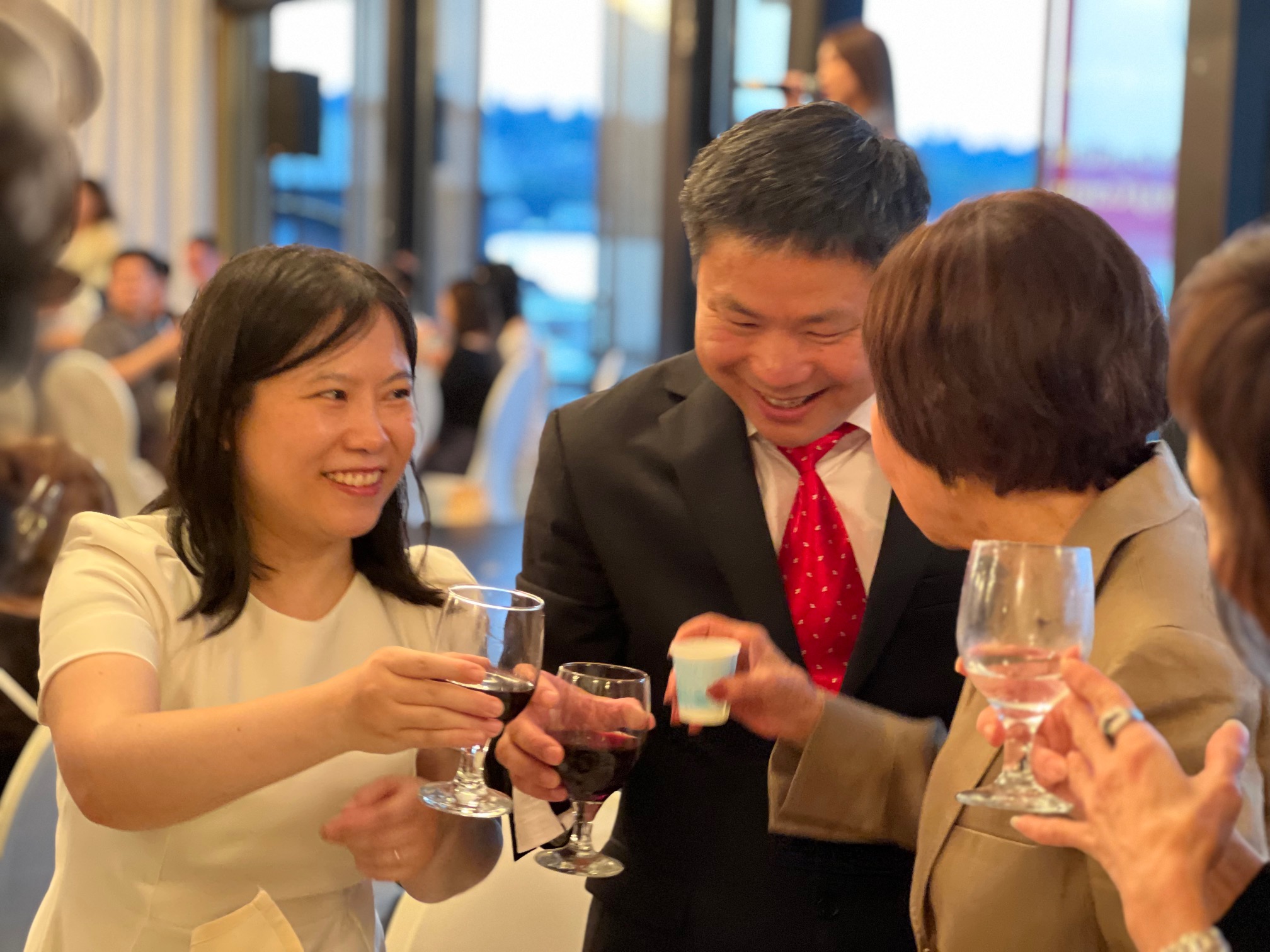 (晚会贵宾发言,左起:汪毓敏、胡清雅、Jimmy Matta、梁浩婷Janice Zahn、邵燕妮(主持人)、刘伯伦(主持人)、Jared Nieuwenhuis、梁国尧、曹霄鹤、区伟明Tony Au、左谷兰、吴小燕、王小玲、陈伟Will Chen)