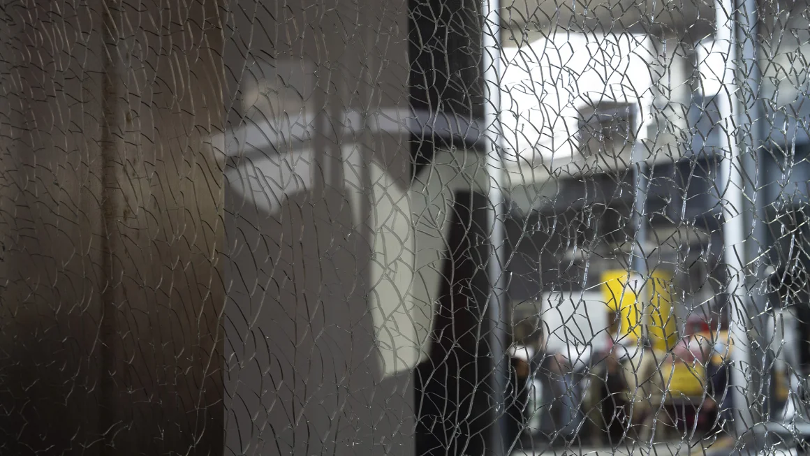 (纽约,示威者在抗议埃隆·马斯克和特斯拉的行动中,砸毁了一家特斯拉展厅的大门。——美联社记者亚当·格雷(Adam Gray)摄)