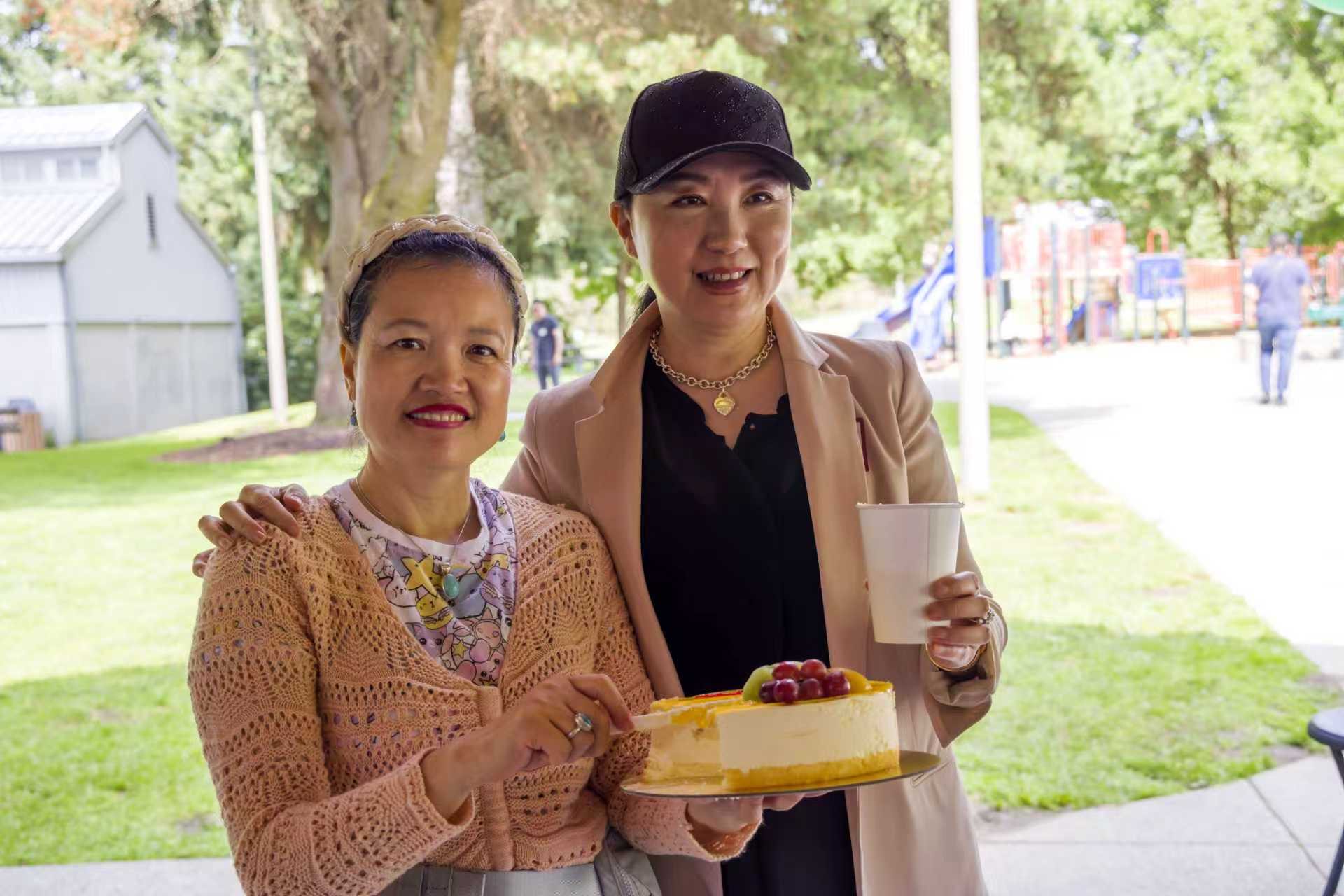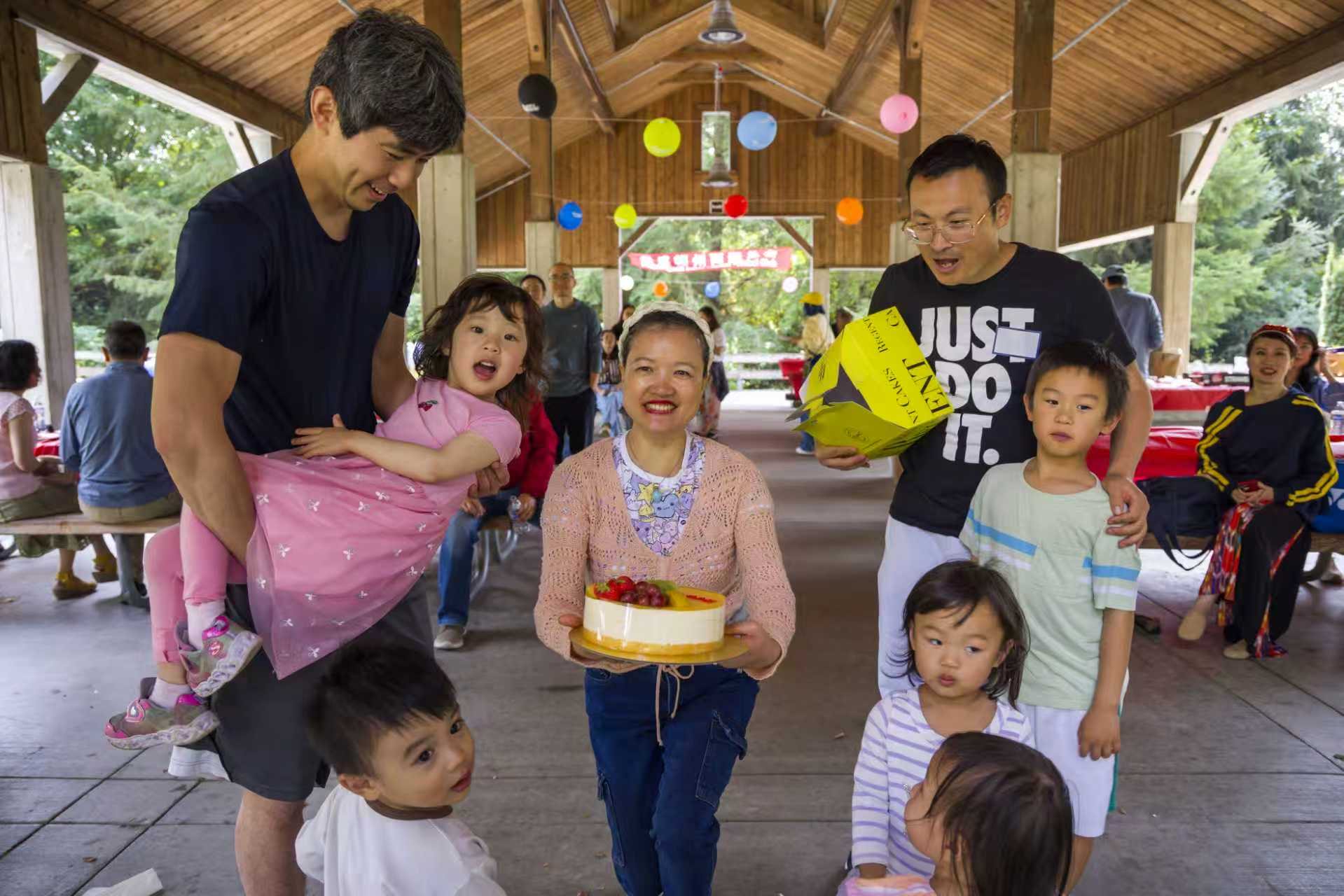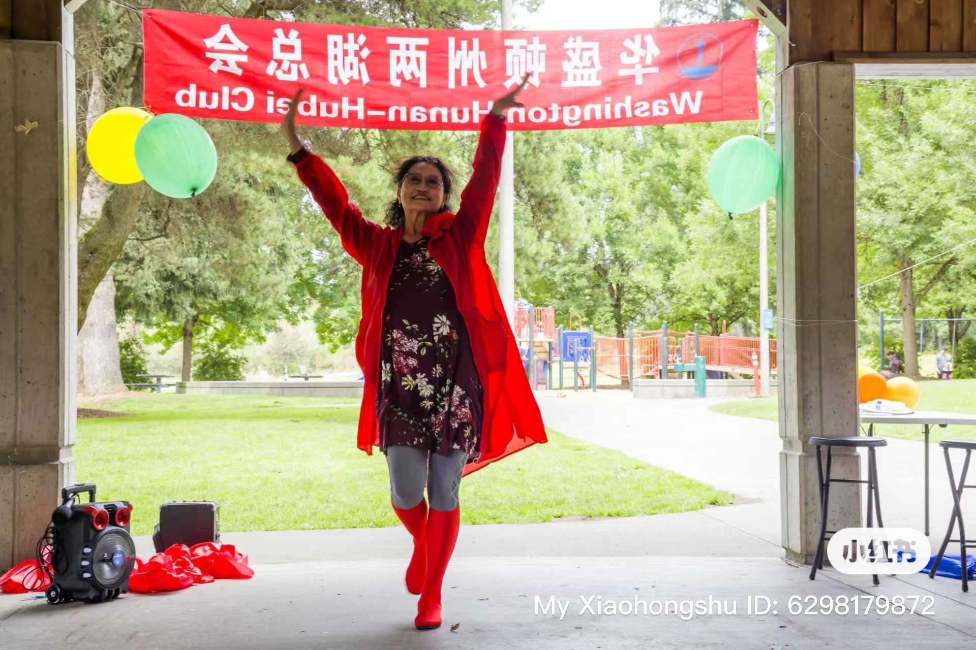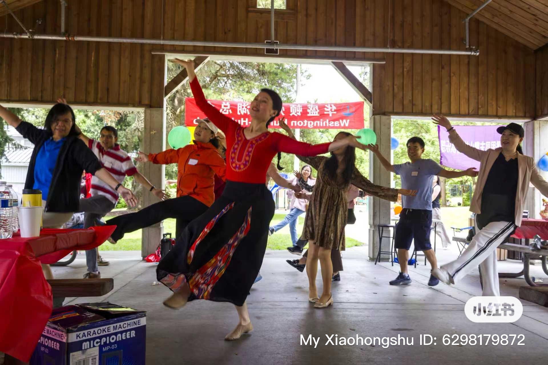 中午时分,香气四溢的烧烤正式开席,笑语声与碰杯声此起彼伏。紧随其后的文艺演出更是异彩纷呈:孩子们带来活泼可爱的《Baby Shark》表演(Education Hill Learning Center),唐凤鸣演唱的京剧《穆桂英挂帅》由著名京胡演奏家何兵伴奏,展现了国粹的独特魅力;淇淇表演的维族舞蹈《欢乐的节日》热烈奔放,江清带来的蒙古舞蹈刚劲有力,淇淇还带领大家表演了集体舞《欢乐的海洋》,全场洋溢着喜悦与激情。丰富多彩的节目不仅展示了两湖乡亲的才艺与热情,也让与会者深切感受到中华文化的魅力和社区的凝聚力。
