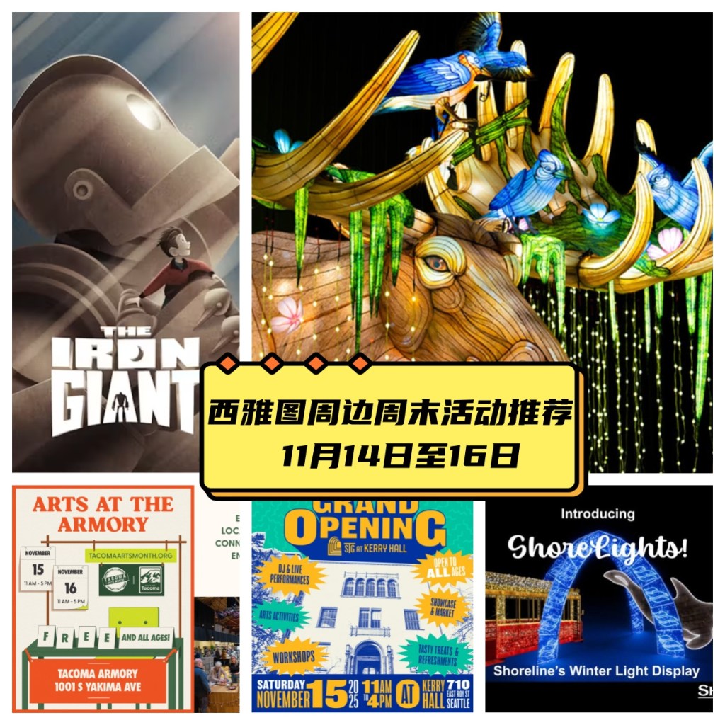 在这个阴雨绵绵的周末,我们特别为您挑选了多个在室内举办的周末活动,包括免费家庭电影、艺术展以及新剧院的开幕庆典。随着黑夜到来得越来越早,多彩的夜灯展陆续开幕,尤其是西雅图动物园的夜游活动,绝对不容错过哦。