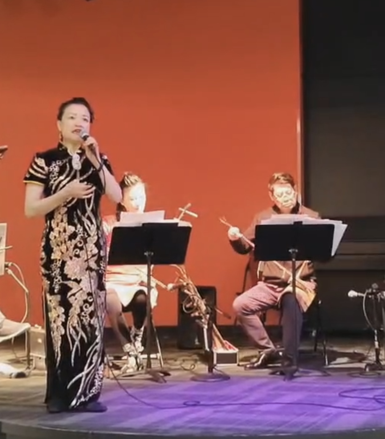 本次京剧演唱会由西雅图京剧协会会长、著名京胡演奏家吴小妹老师担任艺术指导。由她领衔乐队全程现场伴奏,为整场表演奠定了高水平的音乐基底。京剧“三大件”——京胡由何兵先生操琴,京二胡由吴小妹老师执弓,月琴则由叶宗远先生弹奏。乐队配合默契,演奏精湛,使整场演出更添艺术感染力,淋漓尽致地展现出国粹的韵味与魅力。