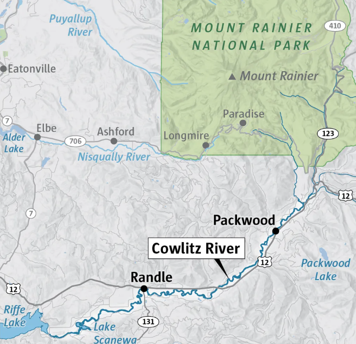 Cowlitz River 与 Nisqually River 也在8日晚接近甚至超过主要洪水水位,并将在第二股大气河抵达后再次暴涨。