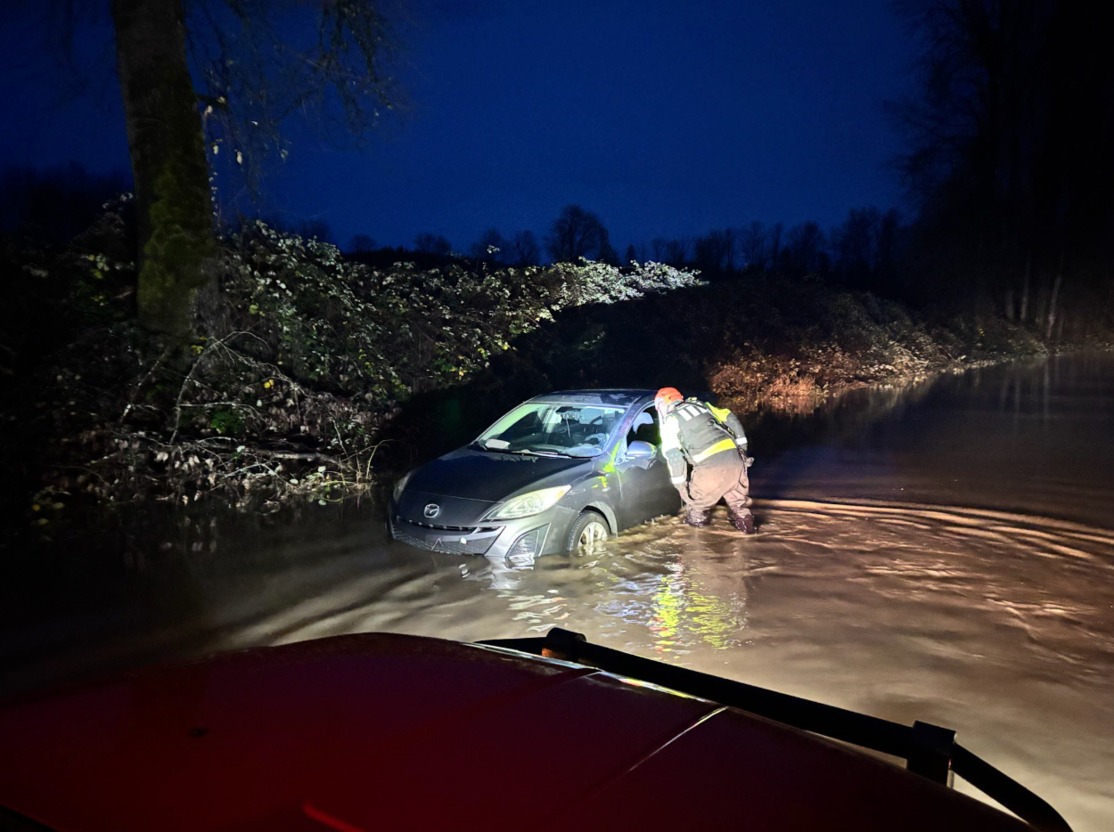 Snohomish County 报告多辆车辆因尝试涉水通过被困,警方反复呼吁民众“看到积水即转弯”(Turn Around, Don’t Drown)。