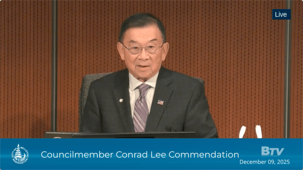 【西雅图中文电台报道,记者Chentao】在贝尔维尤市议会任职长达32年的李瑞麟(Conrad Lee)市议员,于日前正式退休。12月9日,市议会和社区为他举行了隆重的纪念活动,以表彰他为城市做出的卓越贡献。作为贝尔维尤历史上任职时间最长的市议员,李瑞麟的公职生涯不仅创造了历史,更以其坚定的原则、对社区的深切关怀,以及作为亚裔先驱者的象征意义,为城市留下了持久的印记。