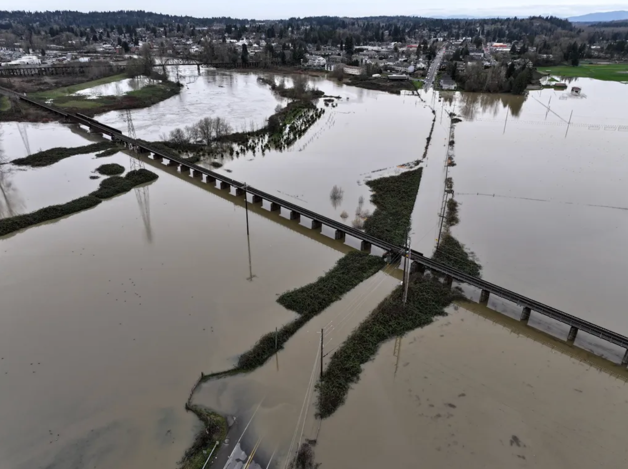 受连续多日的强降雨影响,华盛顿州西部多地水位暴涨,多条主要河流水位逼近甚至突破历史纪录。气象部门警告,本周横扫太平洋西北地区的大气河(Atmospheric River)为近年来最强且持续时间较长的一次,预计洪涝灾情仍将在未来数日持续恶化。