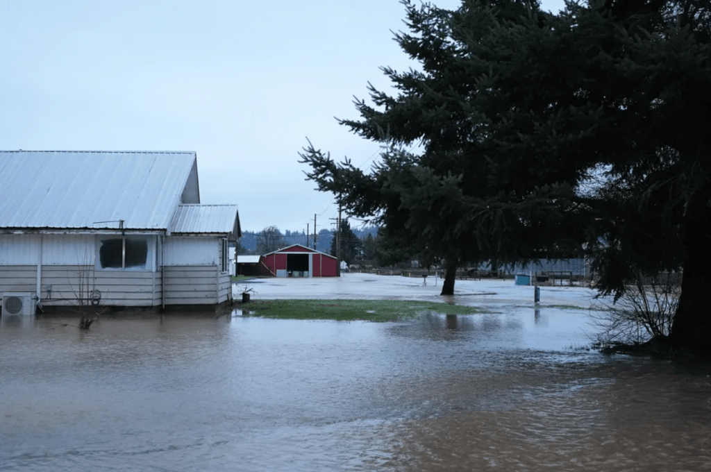 在皮尔斯县奥廷(Orting),普亚拉普河(Puyallup River)在周三上午达到 12.5 英尺的洪峰,超过当地洪水线两英尺以上,并突破历史纪录。