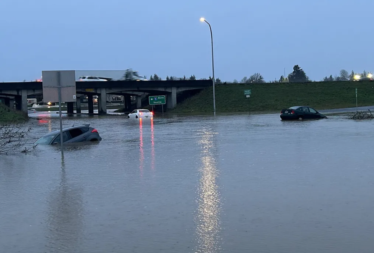 在奥本(Auburn),Green River 水位连续上涨,位于 Auburn Way 的雪佛龙加油站已被洪水部分淹没,周边道路大面积积水。当局警告居民随时准备撤离,并强调“情况可能随时恶化”。