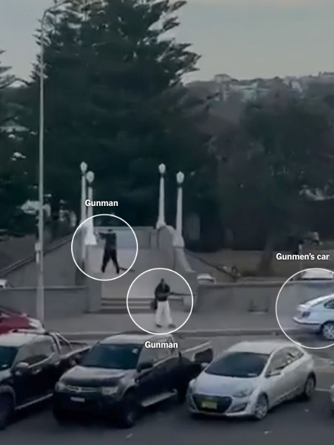 悉尼当地时间周日傍晚,邦迪海滩草地上正举行一年一度的海滩光明节活动:音乐、脸部彩绘、巨型烛台和烧烤,老人孩子聚在一起迎接节日第一晚。约晚上6点半,一辆灰色掀背车停在附近,两名身穿深色上衣、携带长枪的人登上俯瞰人群的人行天桥,随即开火。起初有人以为是鞭炮,但很快意识到“子弹正落下来”,人群在几秒内陷入恐慌。