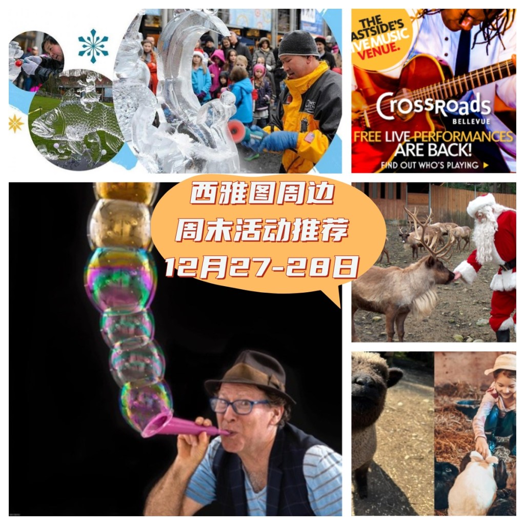 新年前夕的周末,难得无雨。我们精选了西雅图周边的五项特色活动,让这个节日季的尾巴也依旧精彩。有现场冰雕表演、神奇的泡泡秀、免费的音乐演出,还能与小动物亲密互动。