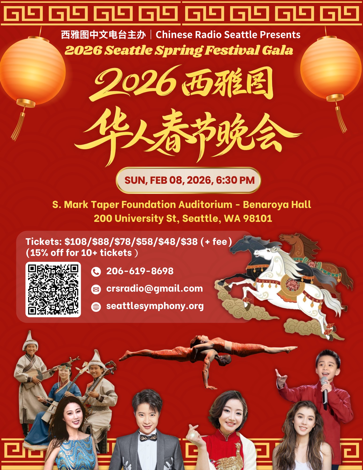 星光灿烂:2026西雅图华人春晚将于2月8日在西雅图贝纳罗亚音乐大厅隆重上演